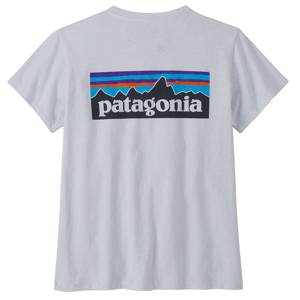 Tricoul pentru femei P-6 Logo Responsibili-Tee de la Patagonia combină bumbacul organic moale și poliesterul reciclat respirabil.