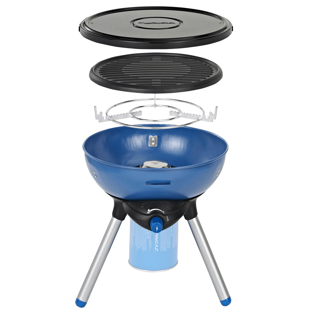 Party Grill® 200 este un companion excelent pentru camping, festivaluri și alte evenimente de vară. Veți aprecia, de asemenea, serviciile sale la cabană sau la un grătar de vară pe terasa casei dvs. Datorită picioarelor sale detașabile și a capacului blocabil, este foarte ușor de transportat și depozitat. Este compatibil cu cartușul Campingaz CV Plus, care poate fi deconectat și reconectat în orice moment. Grătarul/cuptorul include un piezo care permite aprinderea ușoară. Desigur, există, de asemenea, un știft ergonomic, pe care îl puteți roti pentru a regla cu ușurință presiunea gazului și, astfel, puterea flăcării.