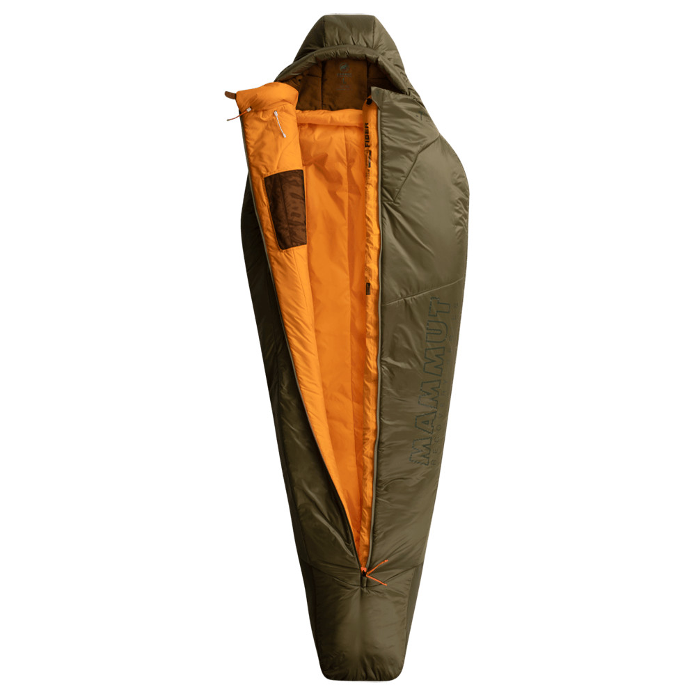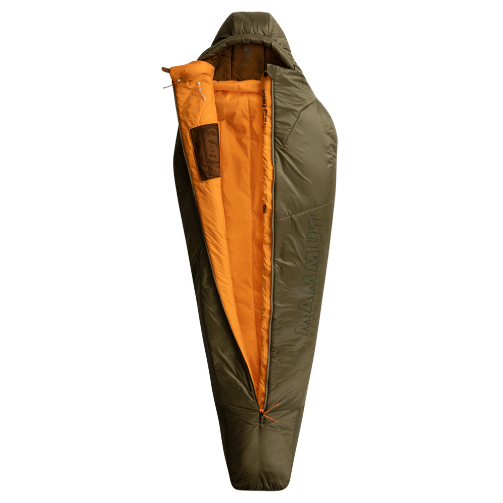 Sacul de dormit pentru trei sezoane cu umplutură interioară sintetică Perform Fiber Bag -7°C de la Mammut vă va oferi un somn confortabil chiar dacă temperatura aerului scade sub zero grade. Este umplut cu microfibră, care garantează o izolare excelentă și o întreținere ușoară. Alte caracteristici importante (o clapă de acoperire sub fermoar și un guler cu cordon) sunt, de asemenea, concepute pentru a elimina cât mai mult posibil pierderile de căldură prețioase. Pe de altă parte, fermoarul central bidirecțional permite reglarea eficientă a temperaturii atunci când sacul de dormit este prea fierbinte. Un cursor special al fermoarului facilitează fixarea și previne agățarea în țesătură. Senzația de confort general este completată apoi de materialul moale plăcut din glugă, care nu ruginește.