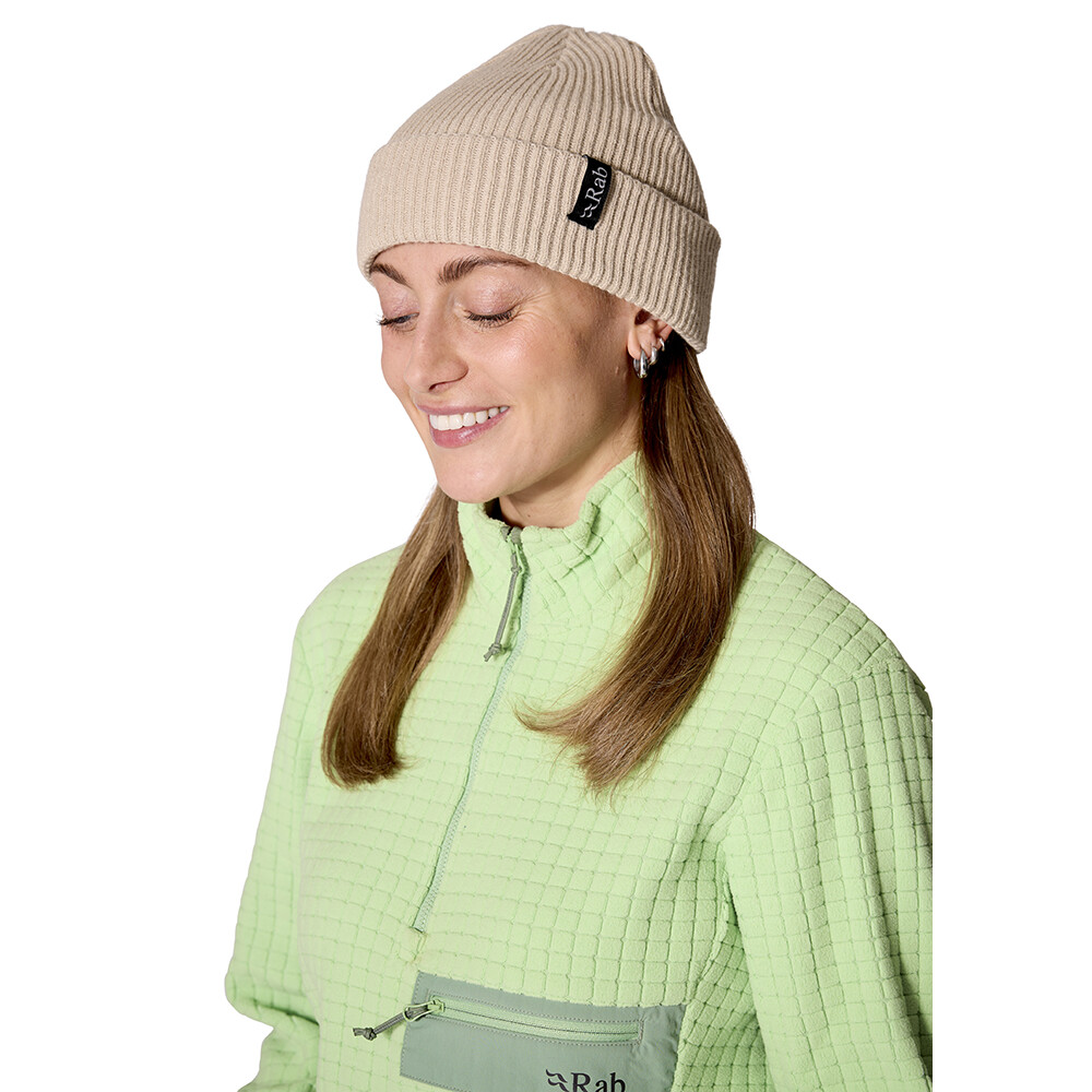 Căciula elegantă de la Rab vă va completa perfect jacheta de iarnă. Tricotul modern cu nervuri, cu o margine rabatabilă, asigură suficientă căldură și confort pentru toate activitățile. Fie că o scoateți în oraș, pe munte sau la bouldering pe vreme rece. Este fabricată din fire 100% reciclate care nu își vor pierde forma în timp, iar șapca nu se va întinde.
