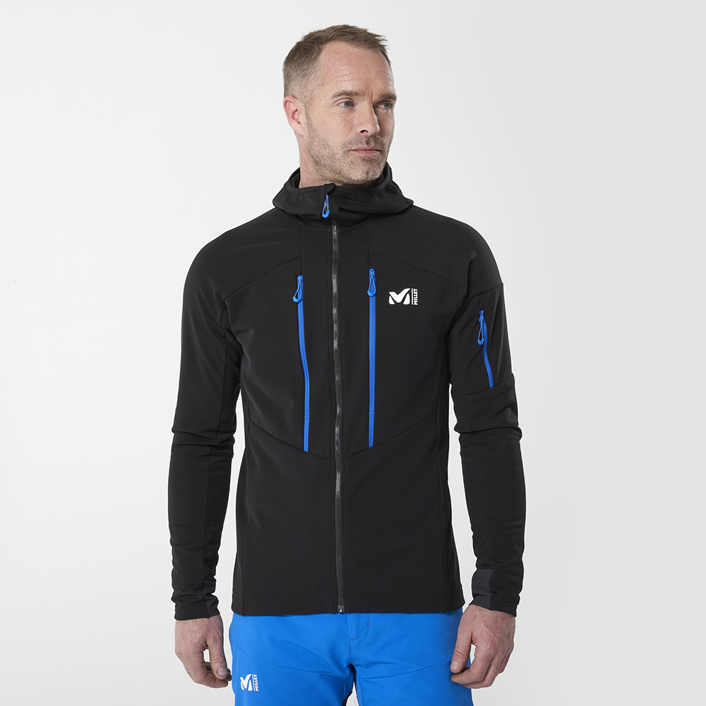 Jachetă bărbătească Pierra Ment Hoodie rezistentă la vânt de la Millet cu construcție hibridă. Concepută pentru skialp și alte activități de intensitate ridicată, cum ar fi alergarea sau schiul de fond.