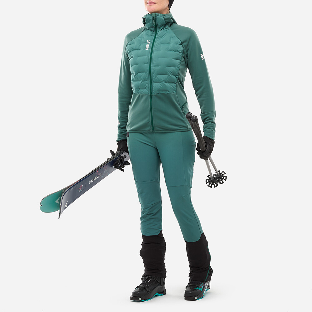 Jacheta Pierra Ment Hybrid Hood pentru femei de la francezii de la Millet este potrivită pentru expedițiile de iarnă cu schiurile pe dealuri.