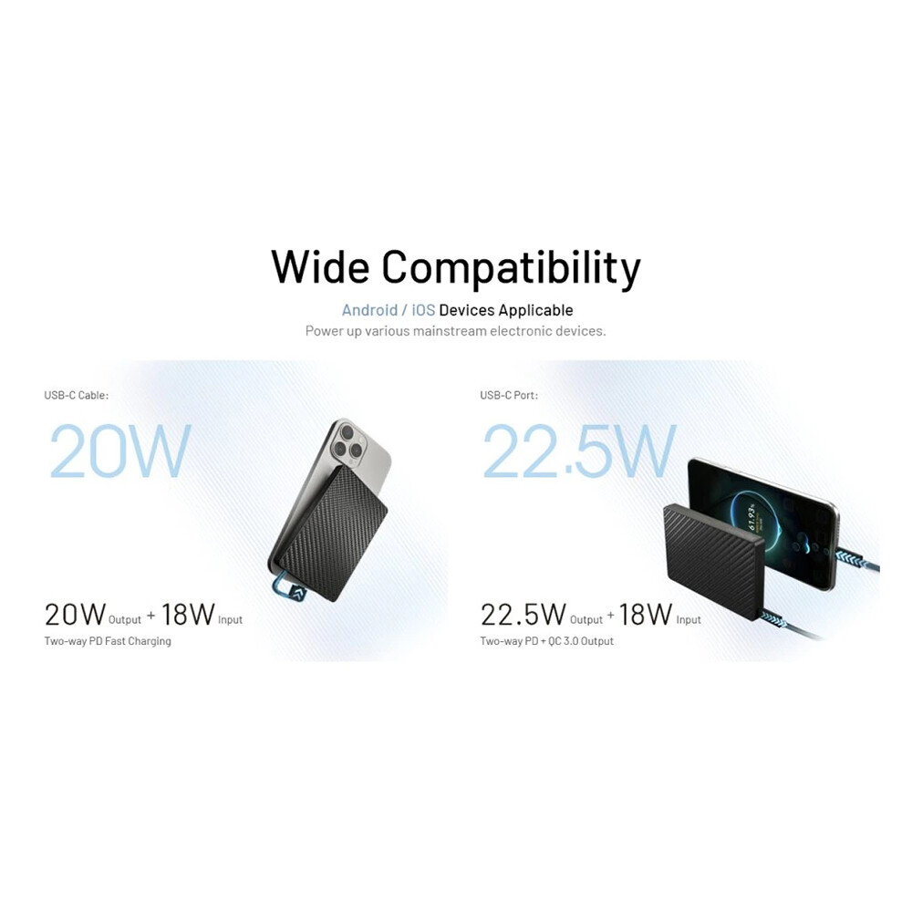 Power bank de călătorie cu rezistență mecanică ridicată și putere de încărcare de până la 3A, pentru încărcarea rapidă a dispozitivelor electronice. Modul de curent redus asigură încărcarea în siguranță chiar și a dispozitivelor mai mici (ceas, lanternă frontală).
