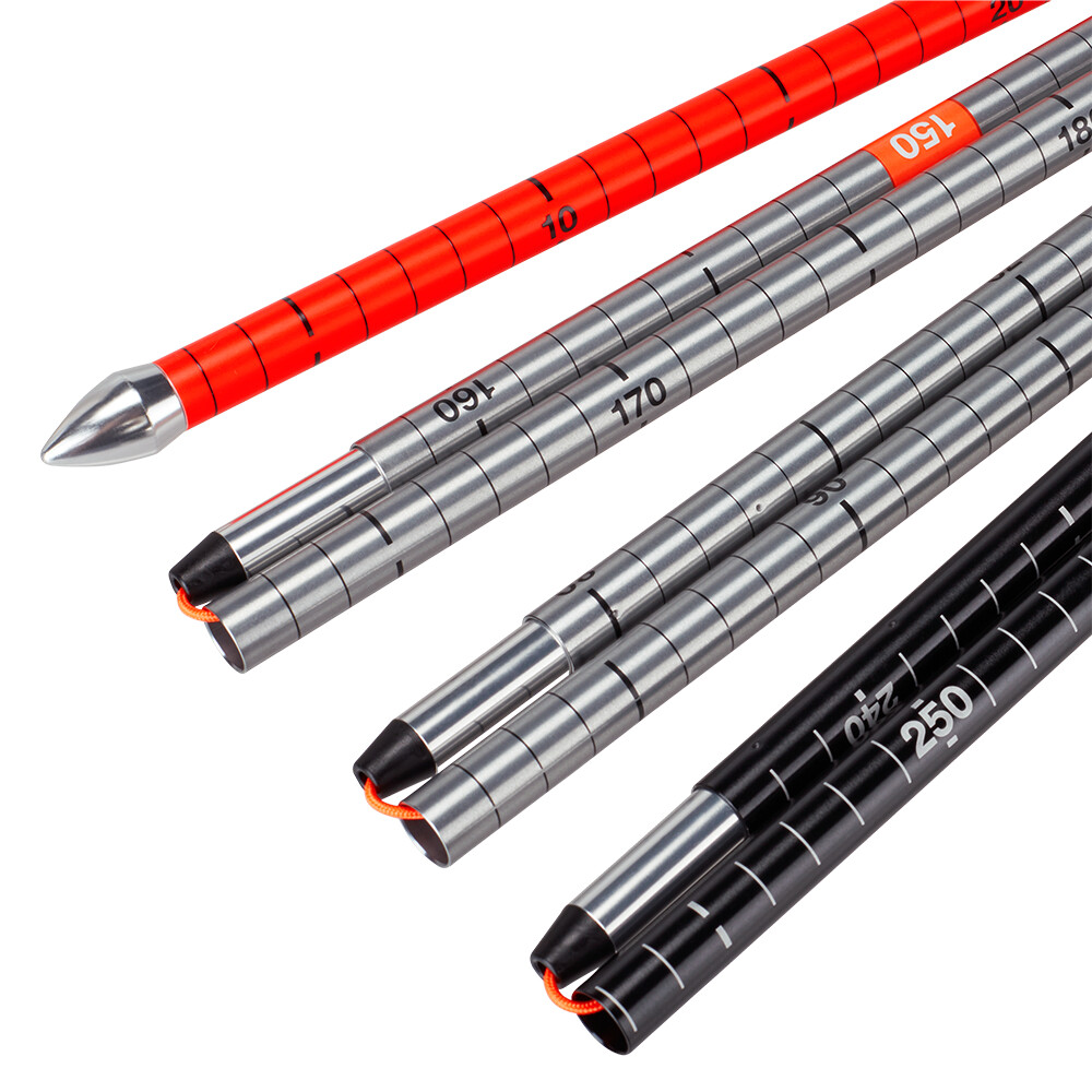 Sondă de avalanșă fabricată din aluminiu ușor, cu cablu de oțel și sistem de blocare rapidă. Lungimea de 280 cm are o utilizare universală, potrivită pentru powder adânc, firn înghețat și antrenament de salvare în avalanșă.