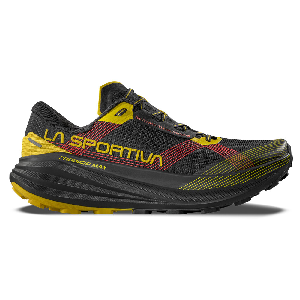 Căutați pantofi de alergare pentru distanțe foarte lungi? La Sportiva Prodigio Max este un pantof de trail running premium care a fost conceput cu un singur scop în minte - să ofere confort maxim și fiabilitate pentru alergări lungi și ultramaratoane. Dacă sunteți în căutarea unui pantof care poate face față la sute de kilometri în munți, pe drumuri pietruite și pe poteci forestiere, Prodigio Max este alegerea evidentă.