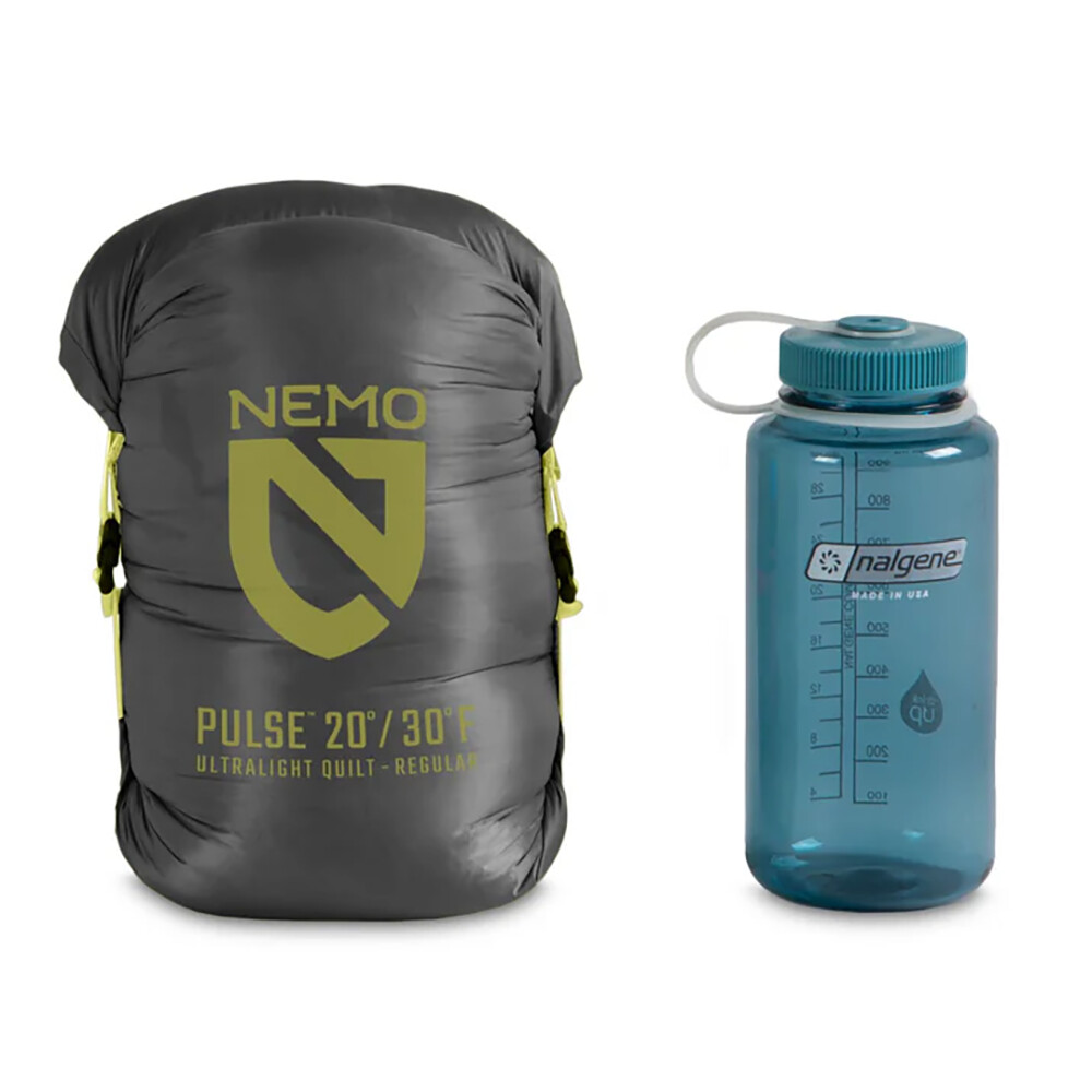 Pătura de tip quilt, adică un sac de dormit fără fermoar, glugă și fără partea de izolație inferioară, este ideală ca opțiune ușoară pentru dormit într-un cort, un sac de dormit sau într-un hamac. Izolația constă din puf de înaltă calitate cu protecție împotriva umezelii (strat cu particule de aur). Cuvertura este realizată ca o pătură matlasată pentru a preveni prăbușirea acesteia, astfel încât penele să rămână distribuite uniform. Partea superioară din jurul gâtului este cu cordon și poate fi fixată la spate. Sunt incluse și curele pentru atașarea la o saltea de mașină. Quilt Pulse face parte din colecția Endless Promise de la Nemo, care se angajează să asigure o producție durabilă folosind materiale reciclate.