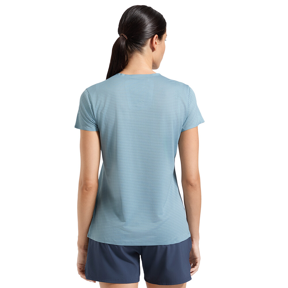 Tricoul este fabricat din material respirabil, cu uscare rapidă, care îndepărtează eficient transpirația de pe piele și ajută la menținerea confortului chiar și în timpul exercițiilor prelungite. Tehnologia Polygiene® reduce mirosul și oferă o senzație de prospețime mai durabilă, făcându-l ideal pentru antrenamente frecvente și evenimente de mai multe zile. Călcâiele tapetate minimizează frecarea și cusăturile, astfel încât tricoul se așează pe corp ca o "a doua piele" și reduce riscul de iritații. Tăietura sportivă cu mânecă scurtă pentru femei se potrivește confortabil.