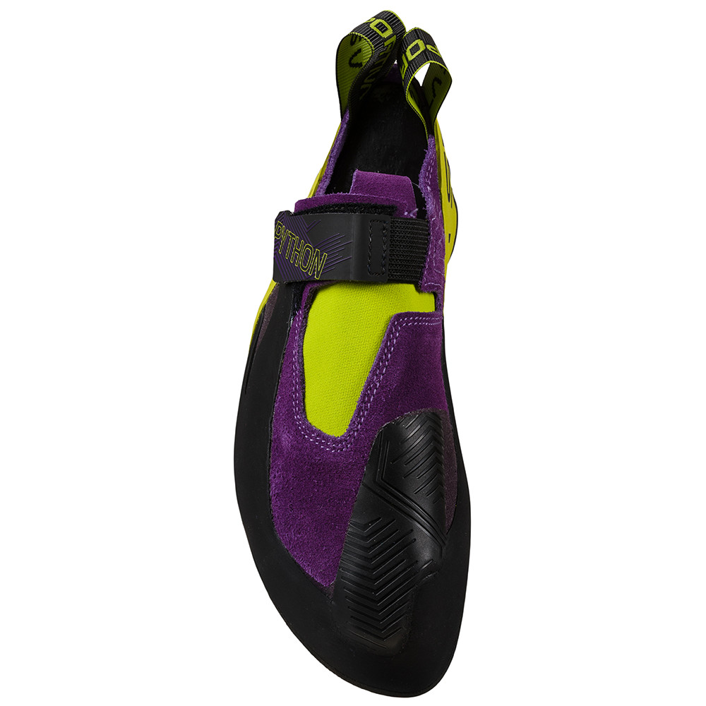 Cățărătorii Python vă vor uimi cu flexibilitatea și sensibilitatea lor. Datorită adezivului cu aderență ridicată Vibram® XS Grip2, acestea permit o aderență perfectă pe teren. Acest lucru le face ideale pentru aplicații în care este necesară o precizie maximă - alpinism de performanță și de competiție, bouldering. Talpa intermediară Laspoflex este plasată doar în zona degetelor, ceea ce sporește adaptabilitatea pantofilor de alpinism, esențială, de exemplu, la alpinismul "pe fricțiune". Designul inovator al călcâiului promovează precizia în timpul lovirii călcâiului, iar vârful cauciucat permite o stabilizare eficientă în timpul decolării. Fixarea velcro a suferit, de asemenea, îmbunătățiri semnificative și nu se va mai desface.