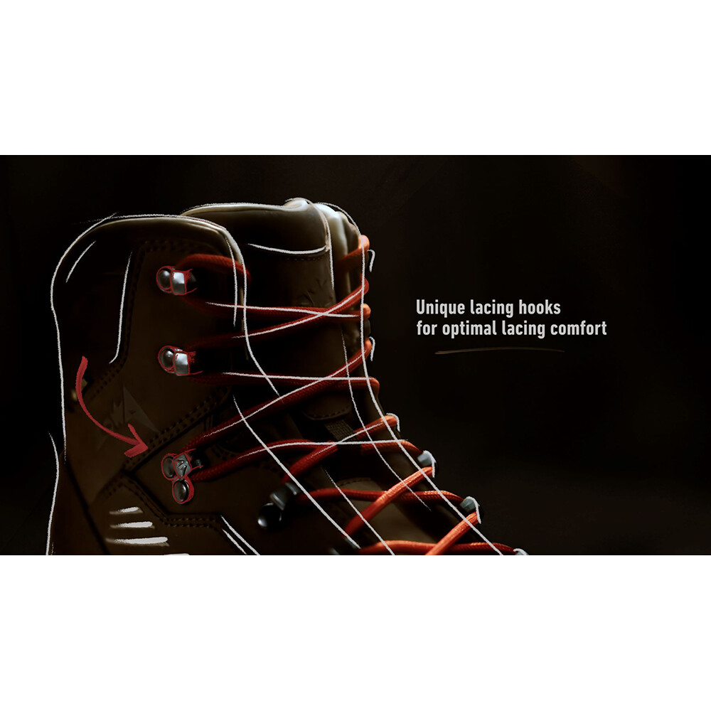 Prin eliminarea cusăturilor inutile, pielea nubuck este capabilă să se plieze pe forma individuală a piciorului, prevenind frecarea și reducând presiunea asupra articulației degetelor.Membrana GORE-TEX impermeabilă și respirabilă cu guler din piele de calitate premium asigură confort la fiecare pas. Talpa intermediară este fabricată din LOWA DynaPU®, talpa este mai rezistentă și împreună cu LOWA® SUPPORT FRAME asigură o ghidare optimă a piciorului.