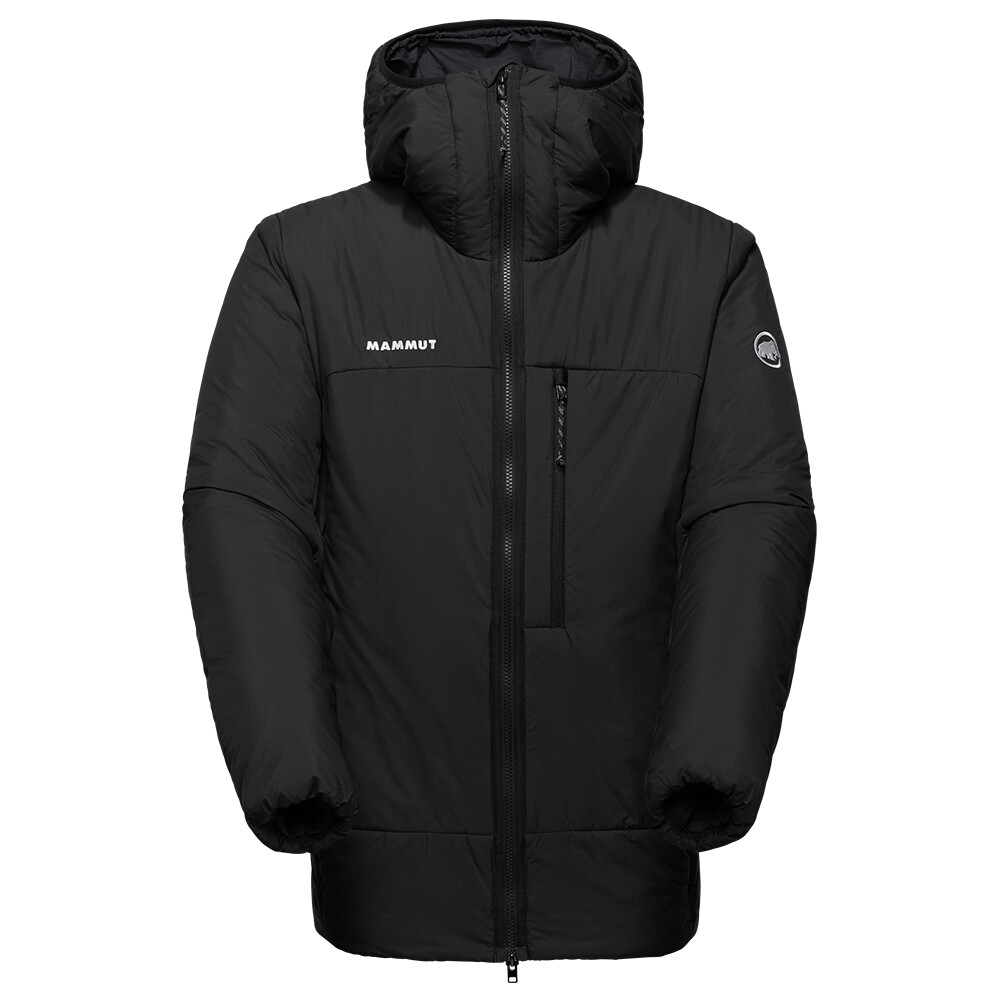 Jacheta este fabricată dintr-un material bine lavabil. Mammut Insulation este creat prin reciclarea frânghiilor de alpinism. Umplutura sintetică vă menține cald chiar și atunci când sunteți ud. Capota reglabilă este compatibilă cu casca. Fermoarul frontal este completat de o clapetă internă. Două buzunare cu fermoar sunt foarte ușor de accesat chiar și atunci când purtați un ham de alpinism sau cu centura de șold a rucsacului fixată. Buzunarele interne din plasă stochează obiectele mici necesare. Mânecile au manșete elastice, iar tivul poate fi ajustat. Un încălzitor intern pentru gât împiedică scăparea căldurii.