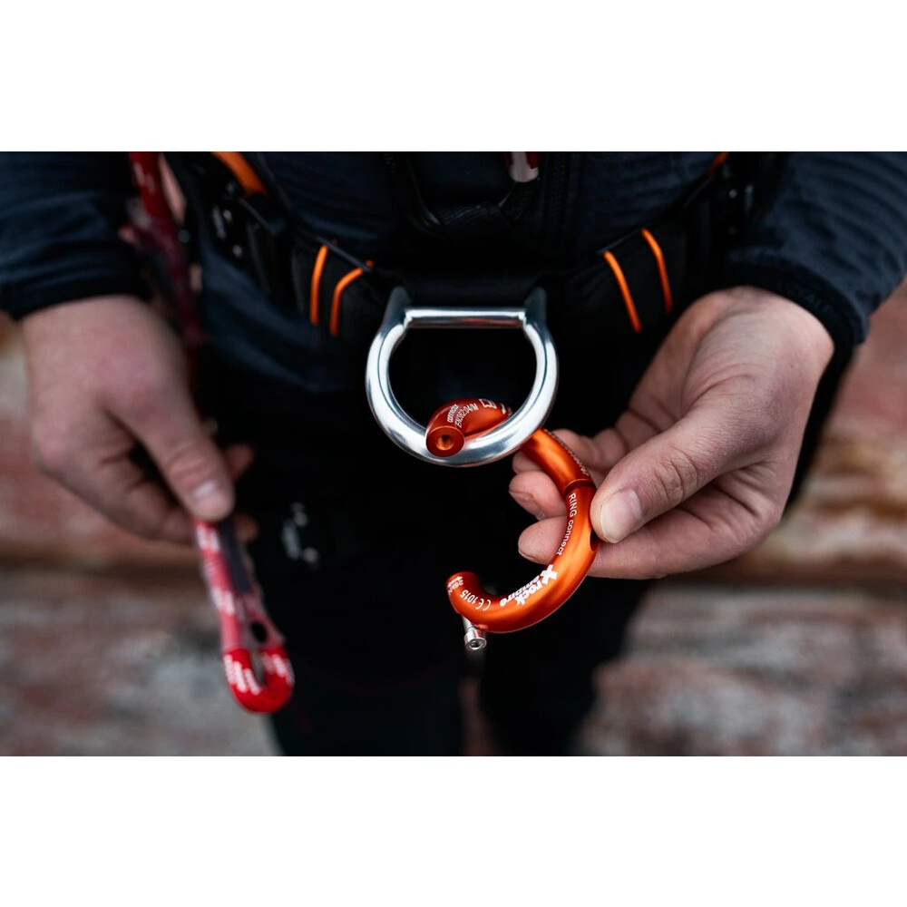 RING Connect este un inel AL complet dezasamblat. Conexiunile dezasamblate sunt fixate cu două șuruburi din oțel inoxidabil. Rezistența maximă a inelului (25 kN) este aceeași în jurul întregii circumferințe a inelului. Datorită secțiunii transversale rotunde și grosimii peretelui de 13,5 mm, RING connect este potrivit pentru înnodarea directă a frânghiilor și a șnururilor direct în inel. Datorită certificării EN362, acesta poate fi utilizat oriunde nu sunt potrivite carabinierele și maillon-urile convenționale.