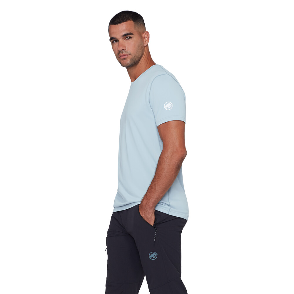 Tricoul funcțional pentru bărbați de la Mammut vă va oferi un climat plăcut chiar și în zilele toride de vară. Tricoul are mâneci scurte, un decolteu rotund și grafică de alpinism.