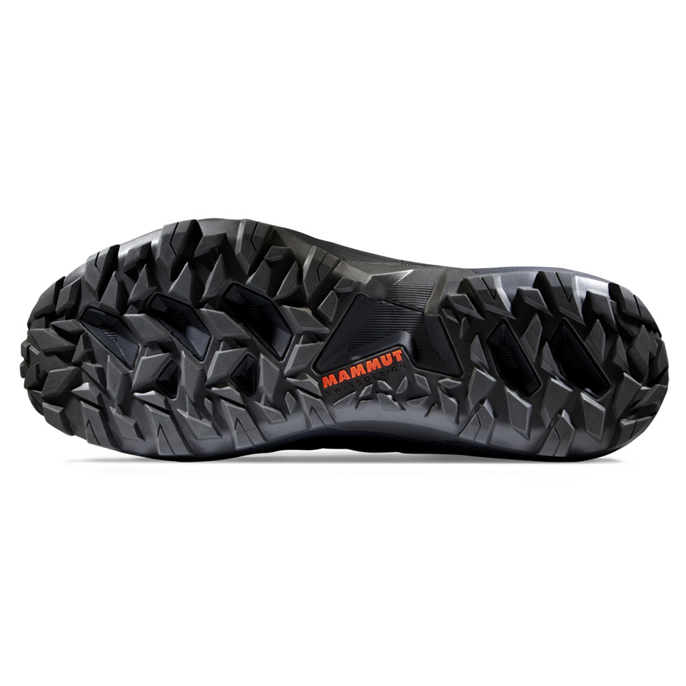 Talpa Mammut Swiss Design oferă un pas sigur și aderență suficientă chiar și pe suprafețe umede. Un beneficiu la fel de important al acestui pantof este talpa intermediară din spumă, care oferă o amortizare excelentă. Membrana impermeabilă respirabilă GORE-TEX vă menține picioarele uscate.