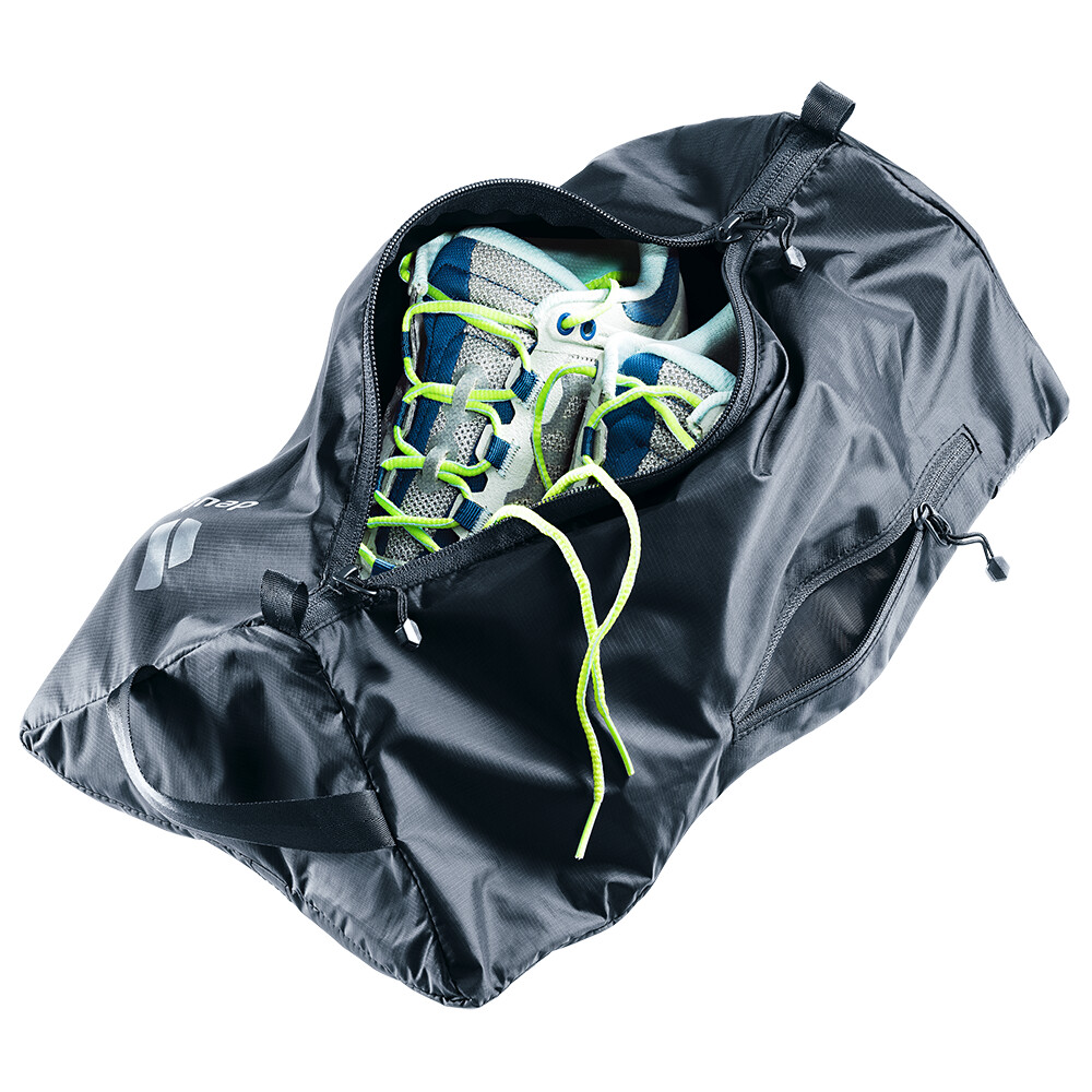 Shoe Pack de la deuter este conceput pentru cizme sportive joase sau pentru drumeții. Are o închidere cu fermoar lung și un mâner în partea de sus pentru transport convenabil. Un mare avantaj este gaura de ventilație cu fermoar, prevăzută cu plasă, care reduce eficient formarea mirosurilor.