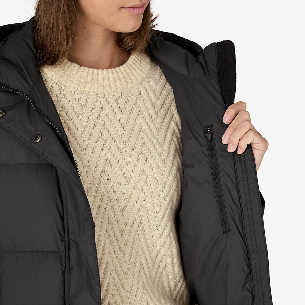 Îmbracă-te în parka lungă cu puf Silent Down de la Patagonia pentru femei, o parka moale cu puf care îți va ține de cald și confortabil în plimbările tale în natură pe timp de iarnă.