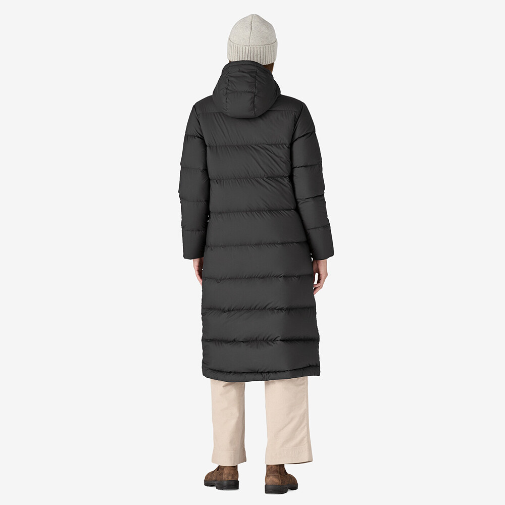Îmbracă-te în parka lungă cu puf Silent Down de la Patagonia pentru femei, o parka moale cu puf care îți va ține de cald și confortabil în plimbările tale în natură pe timp de iarnă.