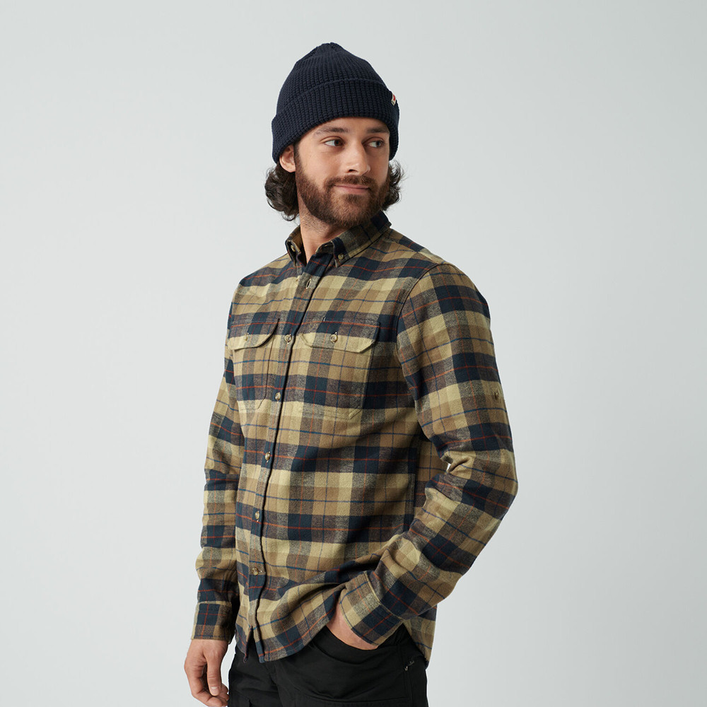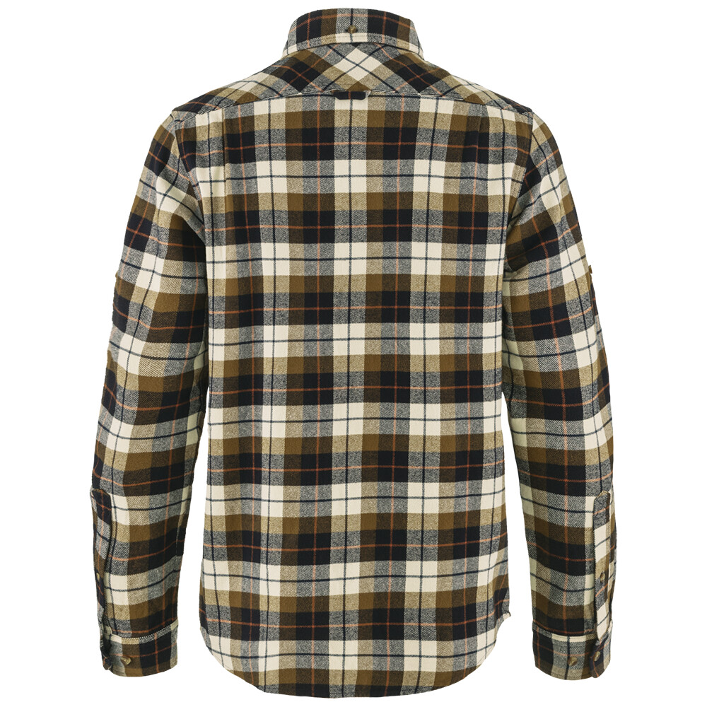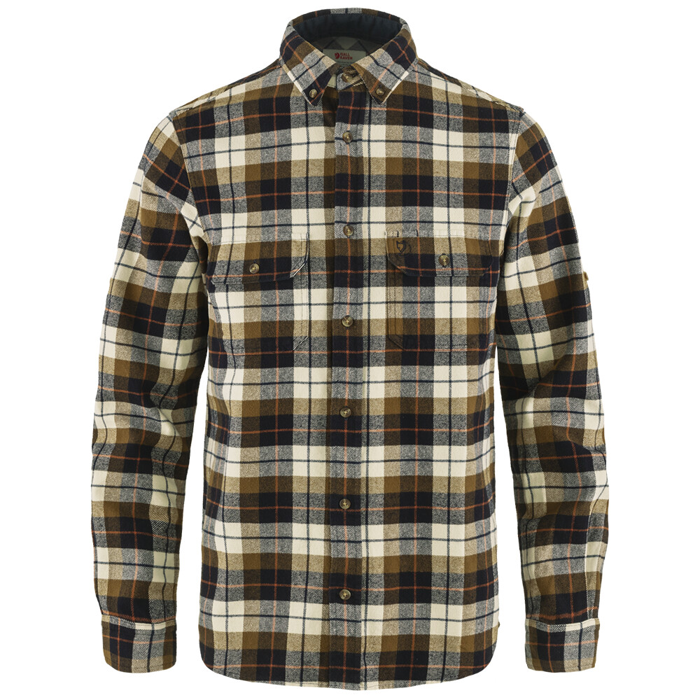 Cămașă de flanel pentru bărbați Fjällräven pentru muncă și timp liber. Material confortabil, mâneci răsucite, buzunare la piept cu nasturi și fantă pentru pixuri.