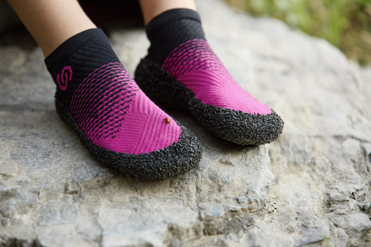 Skinners poate fi folosit și sub apă. Sunt perfecte pentru recifele de corali. - Cei 3 mm de cauciuc suedez de calitate pe talpă și fibrele tricotate italiene de calitate asigură protecția necesară fără a vă limita semnificativ senzațiile. Talpa, dacă o putem numi așa, are și un efect antiderapant, pe care îl veți aprecia mai ales în sălile de sport, la cursurile de yoga sau de fitness, sau atunci când mergeți de-a lungul râurilor pe pietre netede și alunecoase. În mod surprinzător, nu vă veți arde nici de nisipul fierbinte de pe plaje sau de asfaltul încins. Singurul dezavantaj ar putea fi faptul că pantofii de piele nu se aerisesc la fel de mult ca flip-flops pe vreme caldă.