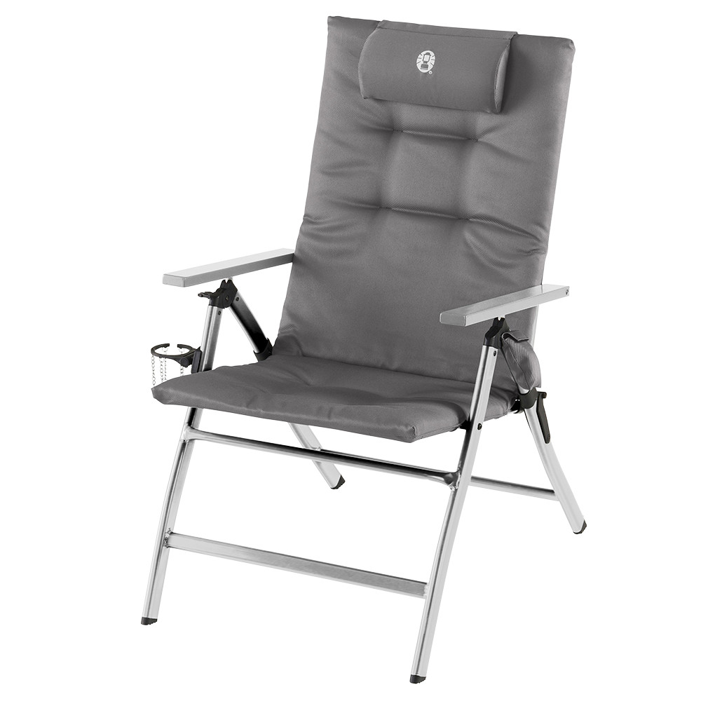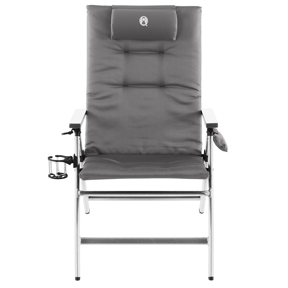 Scaunul rabatabil pliabil de la Coleman oferă cinci poziții diferite de înclinare a spătarului, astfel încât să beneficiați întotdeauna de confort maxim. Scaunul este fabricat din material rezistent la apă și cu uscare rapidă, care este ușor de păstrat curat. Scaunul are o pernă de scaun căptușită, un spătar înalt și o tetieră extra căptușită pentru a reduce presiunea pe spate și gât. Un suport pentru sticle este atașat la rama de aluminiu a scaunului pentru a vă ține băutura preferată la îndemână.