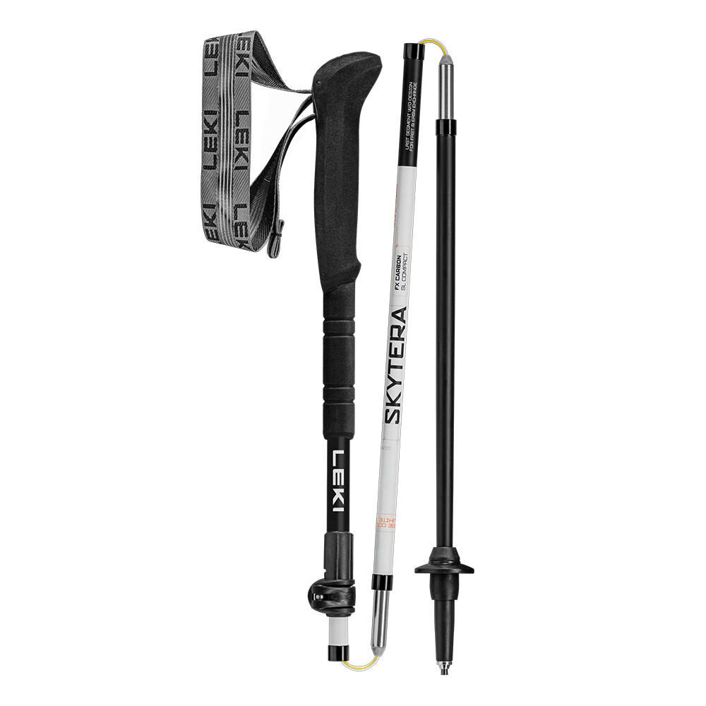 Bețele compacte Skytera FX Carbon SL de la Leki sunt concepute pentru drumeții și datorită greutății lor reduse sunt perfecte pentru ascensiuni montane rapide. Sunt confecționați din carbon și sunt pliabili, cu reglare a lungimii în trepte de 5 cm. Pentru a-i desfășura, aveți nevoie de o singură mișcare (apăsarea unui buton), asemănătoare unei sonde de avalanșă. În plus, acestea au o lungime relativ mică atunci când sunt pliate (39 cm). Ele vor încăpea în buzunarele laterale chiar și ale unui rucsac mai mic pentru excursii de o zi. Mânerul este prevăzut cu o extensie plăcută din spumă și o buclă de reglare rapidă. Partea superioară a mânerului are o suprafață mare de prindere, pe care o veți folosi mai ales la coborâre.