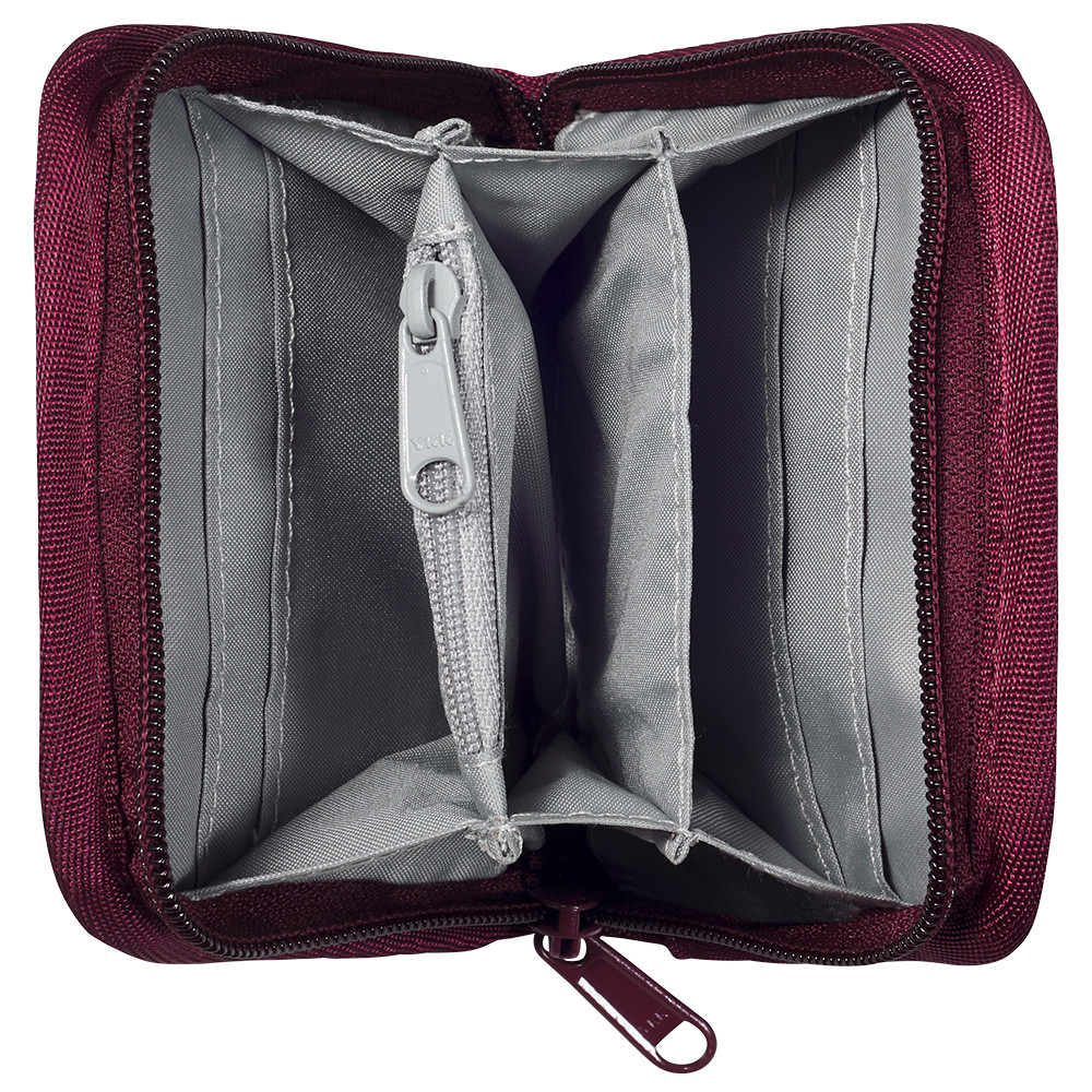 Portofel cu posibilitatea de a fi purtat la încheietura mâinii sau atașat la alte bagaje. Organizați-vă clar bancnotele, monedele și cardurile de credit. Are un buzunar deschis în spate pentru articolele utilizate frecvent.