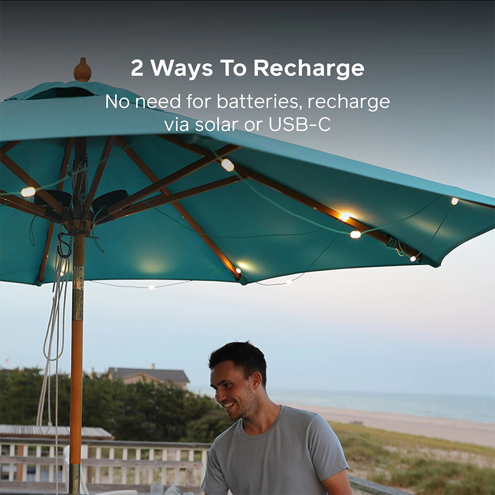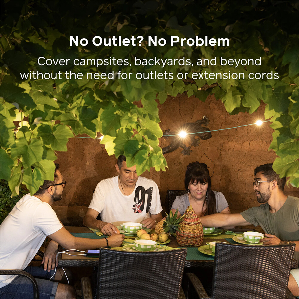 Iluminat pe care îl puteți folosi în camping, în grădină, când călătoriți cu mașina sau chiar când dormiți într-un cort la țară. Lanțul luminos de la BioLite este format din 10 becuri incasabile, cu o lungime totală de 5,5 m. Acesta este reîncărcabil prin USB-C sau prin intermediul panoului solar încorporat. În plus, îl puteți folosi și ca power bank pentru a vă încărca telefonul mobil. Puteți alege din patru moduri de iluminare cu lumină albă caldă, cu o intensitate totală de 100 lm.