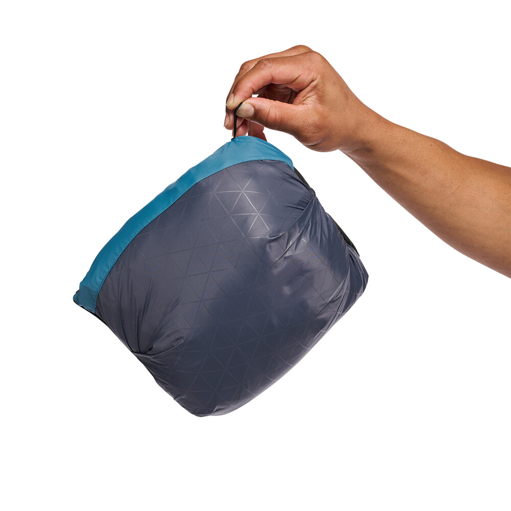 Jacheta izolată pentru bărbați cu pene de gâscă vă va menține perfect cald. Materialul exterior reciclat, cu tratament hidrofug DWR (fără PFC), protejează de umiditate. Buzunarul stâng cu fermoar este folosit pentru împachetarea jachetei.