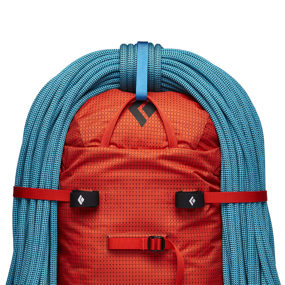 Compartimentul principal este accesat din partea superioară prin intermediul unui capac care se deschide cu un fermoar. Există suficient spațiu pentru un hanorac sau un tricou de rezervă, precum și pentru o gustare sub forma unei batoane energizante. Pentru documente personale și alte obiecte mici, cum ar fi un cuțit sau o lanternă frontală, există un buzunar extern cu fermoar pe capac. Diverse echipamente și materiale, cum ar fi piolet, crampoane, frânghie, praguri sau carabiniere, pot fi atașate cu ajutorul unor mânere și bucle la îndemână, situate fie pe partea din față a rucsacului, fie pe centura de talie. În cele din urmă, ajustați dimensiunea rucsacului cu curelele laterale de compresie și veți avea un partener indispensabil pentru activitățile dvs. montane.