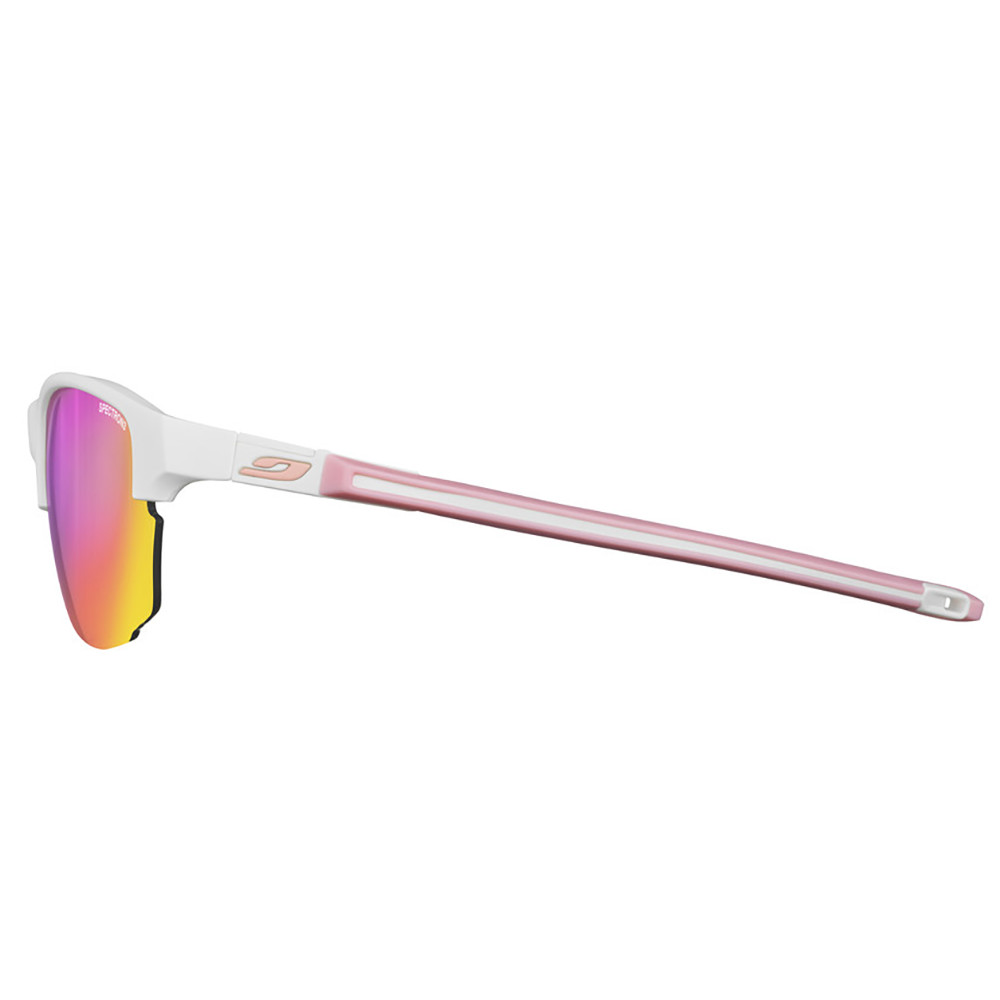 Julbo Split sunt ochelari de soare pentru femei, concepuți pentru trail running, ciclism și alte discipline de viteză și anduranță în aer liber. Lentilele cu filtru solar de categoria 3 protejează în mod fiabil ochii de soarele puternic de vară din zonele joase până în Alpi. Lentilele ochelarilor sunt suspendate în rama superioară, fără rame inferioare, pentru ventilație perfectă și greutate redusă. În plus, au curbe reglabile ale picioarelor și o potrivire moale 3D Nose Fit modelabilă pentru confort maxim și aderență în timpul mișcărilor extreme. Dimensiunea face ochelarii potriviți pentru utilizatorii cu fețe mai mici.