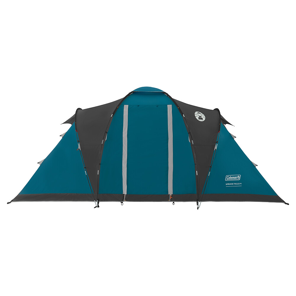 Spruce Falls 4 de la Coleman este un cort potrivit pentru camping pentru o familie sau un grup de prieteni. Forma sa combină construcția de tip tunel și dom. Cortul are două intrări în mijloc, care pot fi folosite ca o copertină cu doi stâlpi pentru a crea o zonă umbrită în fața cortului, ideală pentru a sta pe un scaun de camping. Cortul este bine ventilat și, datorită ventilației din plasă, permite aerului să circule fără intruziunea insectelor nedorite.
