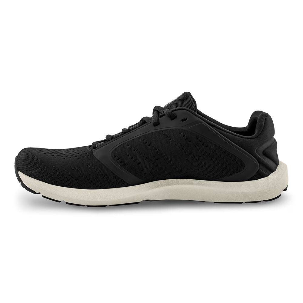 Pantofi pentru femei ST-5 de la Topo Athletic pentru utilizare versatilă pentru diverse activități sportive, potriviți pentru alergarea zilnică, fitness sau o plimbare prin oraș. Au drop zero și o talpă cu o grosime de numai 14 mm. Acest lucru permite picioarelor să se miște complet natural, ca în cazul pantofilor desculți, asigurând în același timp un confort perfect pe suprafețe dure. Ca toate modelele Topo Athletic, ST-5 are un antepicior lat și totuși o fixare suficientă în mijlocul piciorului și călcâi. Pantofii sunt astfel suficient de stabili chiar și la viteze mai mari sau pe terenuri mai dificile.