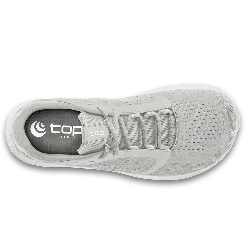 Pantofi pentru femei ST-5 de la Topo Athletic pentru utilizare versatilă pentru diverse activități sportive, potriviți pentru alergarea zilnică, fitness sau o plimbare prin oraș. Au drop zero și o talpă cu o grosime de numai 14 mm. Acest lucru permite picioarelor să se miște complet natural, ca în cazul pantofilor desculți, asigurând în același timp un confort perfect pe suprafețe dure. Ca toate modelele Topo Athletic, ST-5 are un antepicior lat și totuși o fixare suficientă în mijlocul piciorului și călcâi. Pantofii sunt astfel suficient de stabili chiar și la viteze mai mari sau pe terenuri mai dificile.