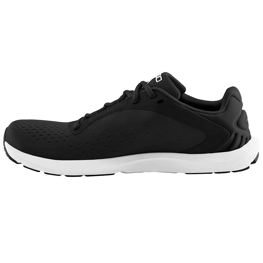 Pantoful Topo Athletic ST-6 Women este un pantof ușor de damă pentru utilizare versatilă în timpul diferitelor activități sportive. Este potrivit pentru alergarea de zi cu zi, fitness sau o plimbare prin oraș. Are drop zero și o talpă cu o grosime de numai 14 mm. Acest lucru permite picioarelor să se miște complet natural, ca în cazul pantofilor desculți. Spre deosebire de aceștia din urmă, însă, oferă un confort sporit pe suprafețe dure. La fel ca toate modelele Topo Athletic, ST-6 are un antepicior lat. Chiar și așa, acest pantof vă va oferi o fixare suficientă a piciorului în zona mediană și a călcâiului, ceea ce veți aprecia la viteze mai mari sau pe terenuri mai dificile.