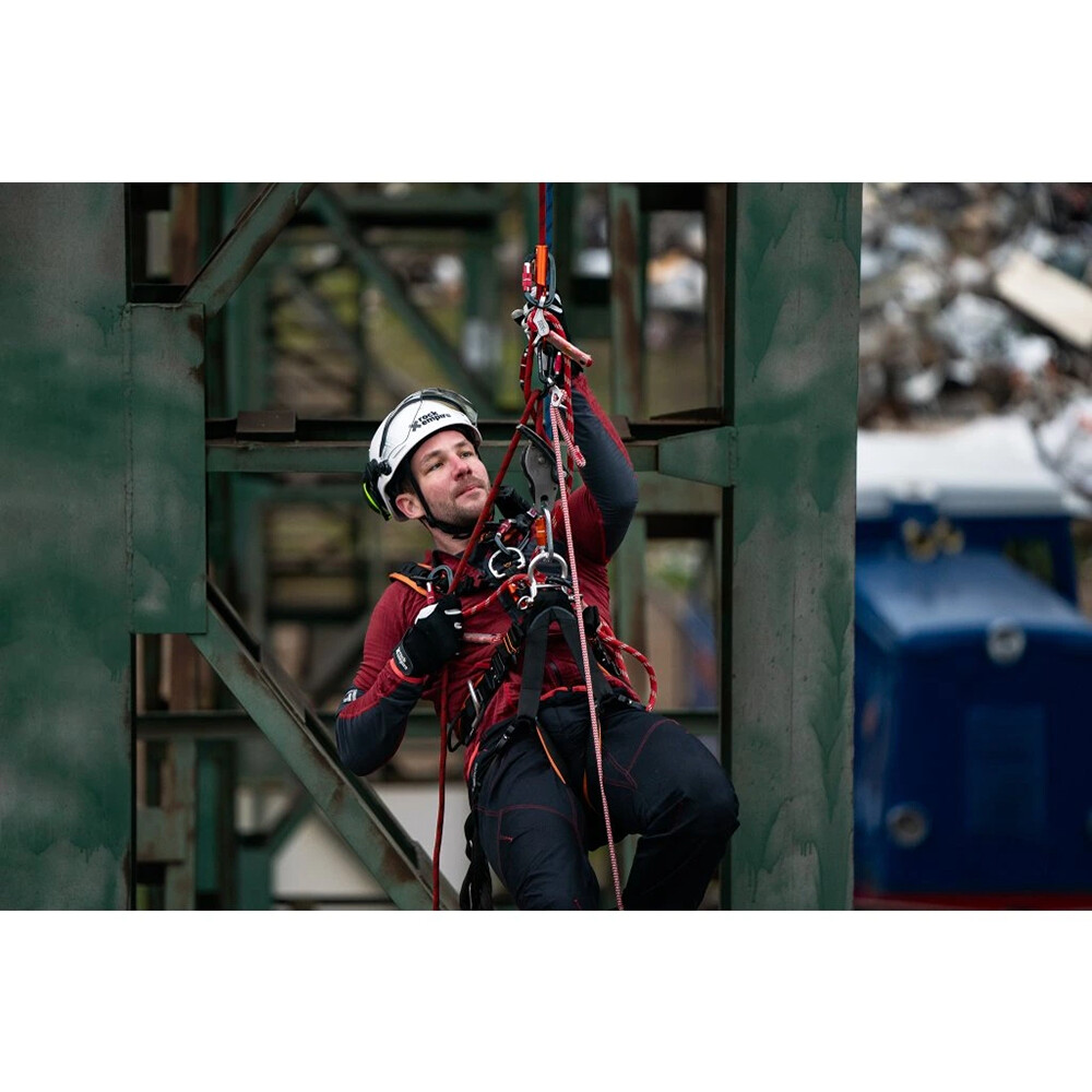 - pentru conectarea la ham, este necesar un cuplaj de lucru (EN 361) de preferință de tip majlon sau un inel de conectare Rock Empire