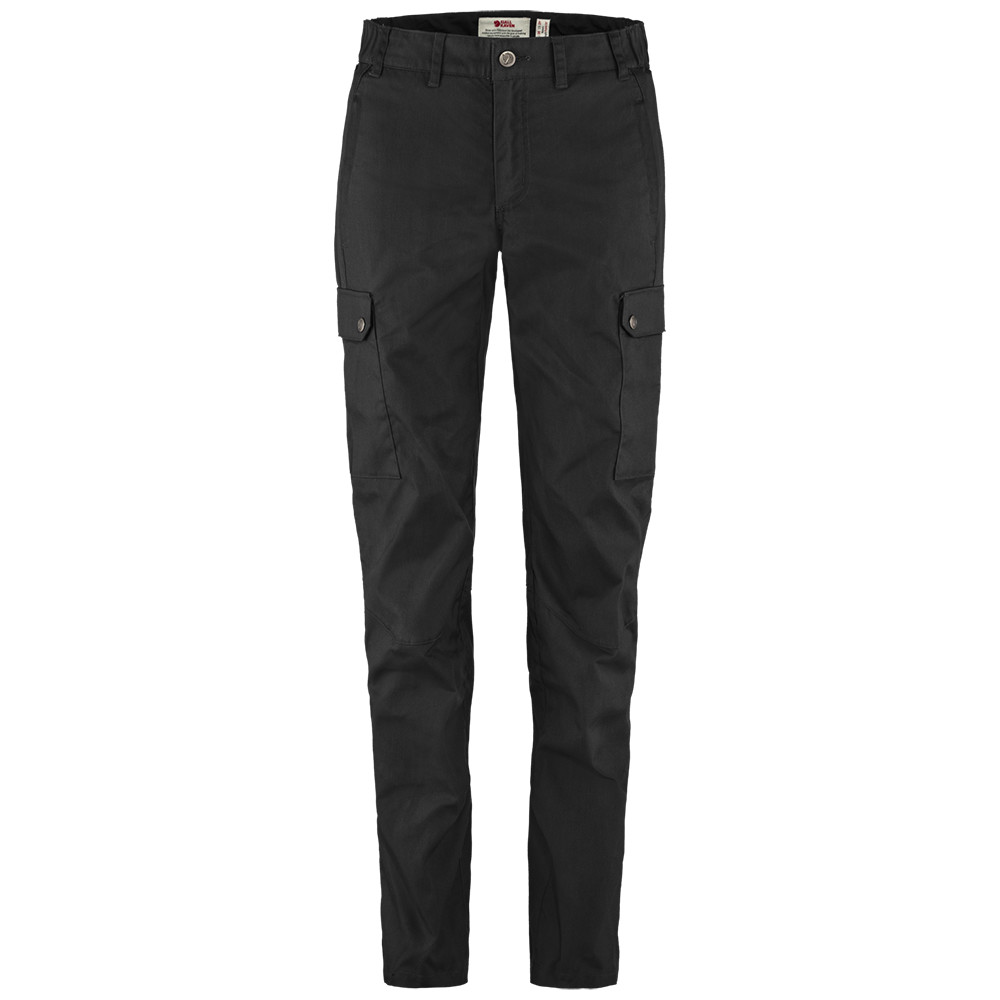 Pantalonii casual confortabili pentru femei Stina Fjällräven sunt perfecți pentru rătăciri în natură și pentru purtarea zilnică. Sunt confecționați din G-1000® Eco Stretch (poliester reciclat/ bumbac ecologic), care poate rezista vântului și ploii ușoare. Ceararea materialului poate crește rezistența acestuia la elemente.