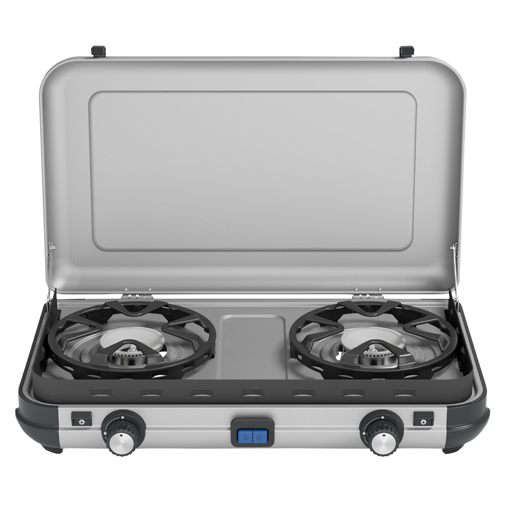 Vă place să gătiți în aer liber? Atunci veți aprecia aragazul Camping Kitchen 2 Maxi de la Campingaz. Acesta are două arzătoare independente cu control individual al puterii. Acesta permite utilizarea oalelor și tigăilor obișnuite de bucătărie cu diametrul de până la 28 cm. Suporturile sunt detașabile pentru o curățare ușoară la camping.