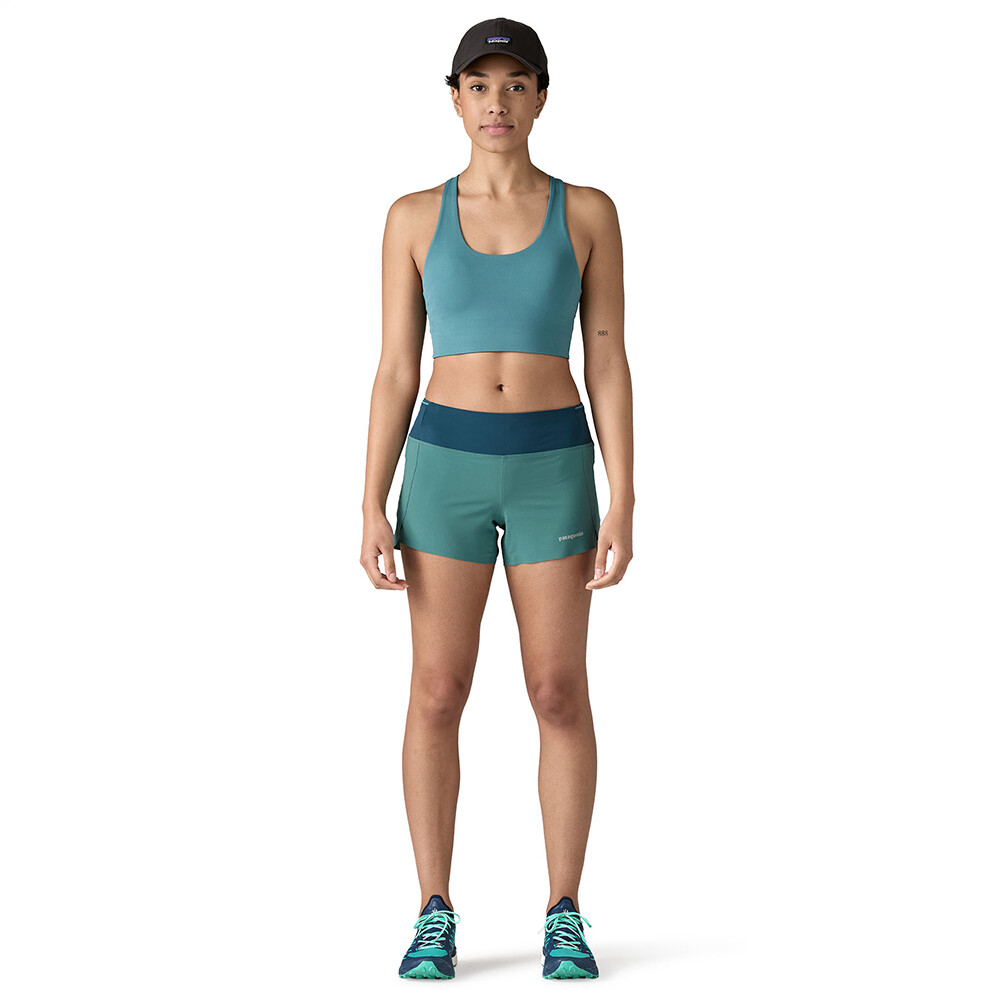 Pantalonii scurți ușori pentru femei Strider Pro Shorts sunt probabil cei mai tehnici pantaloni scurți de alergare de la Patagonia. Sunt confecționați din material cu uscare rapidă și respirabil, 90% poliester Prevented Ocean Plastic™ reciclat, care provine din deșeuri de plastic provenite din comunitățile de coastă aflate în pericol. 10% Spandex cu un finisaj DWR, țesut în patru direcții, facilitează mișcarea și asigură o potrivire confortabilă. Este lipsit de PFC, deci este un strat hidrofug durabil care nu conține substanțe chimice perfluorurate. Căptușeala moale din tricot miDori™ bioSoft 100% reciclat aspiră frumos, iar tratamentul de control al mirosului HeiQ® Pure reduce mirosurile.