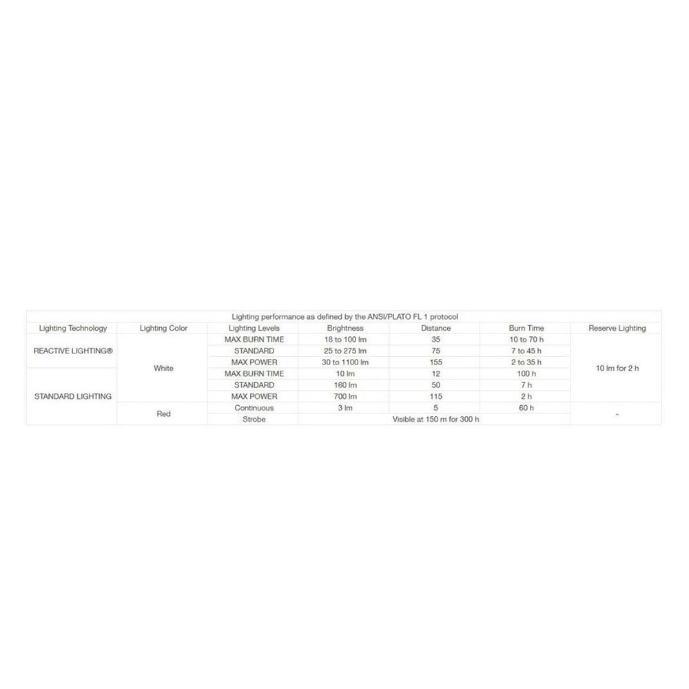 Lampă frontală cu ieșire de 625 lm potrivită pentru diverse activități. Are 3 moduri de lumină albă și lumină roșie. Funcție de blocare și reflector fosforescent. Funcționează cu celulă reîncărcabilă (inclusă) sau 3 baterii AAA.