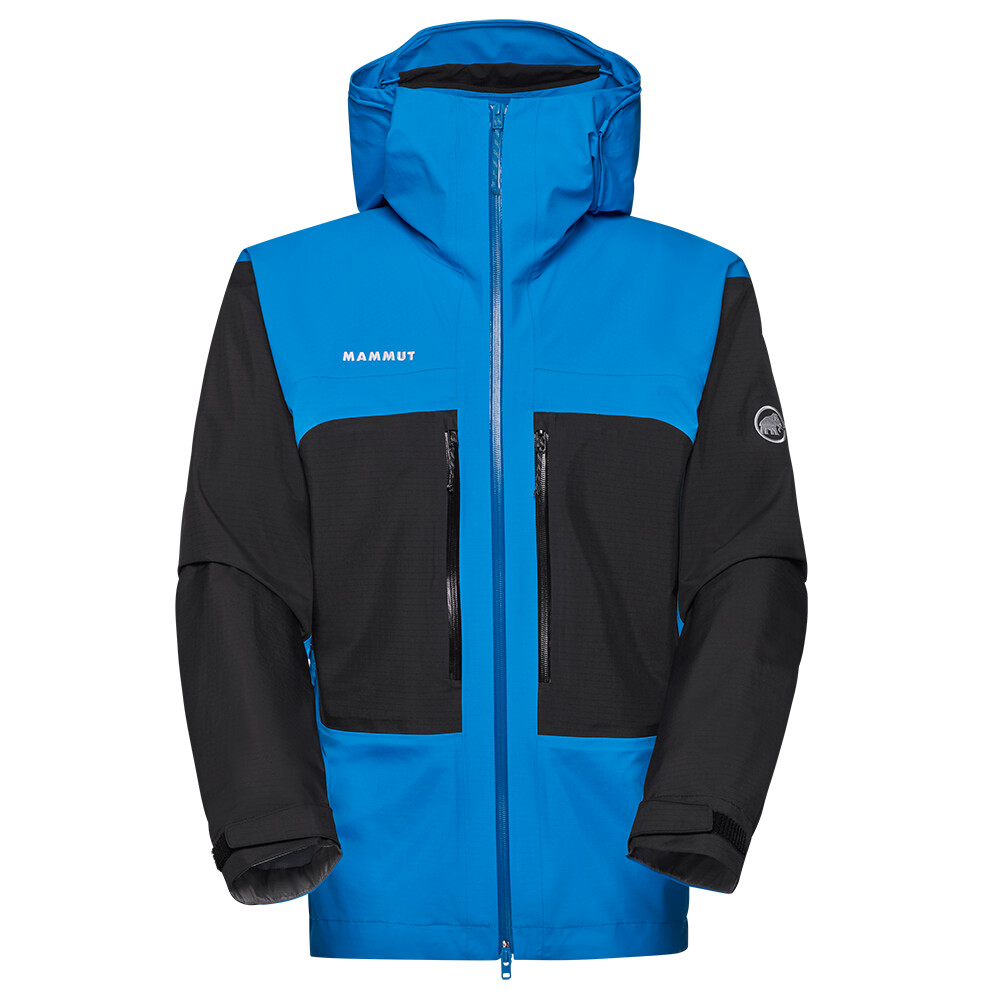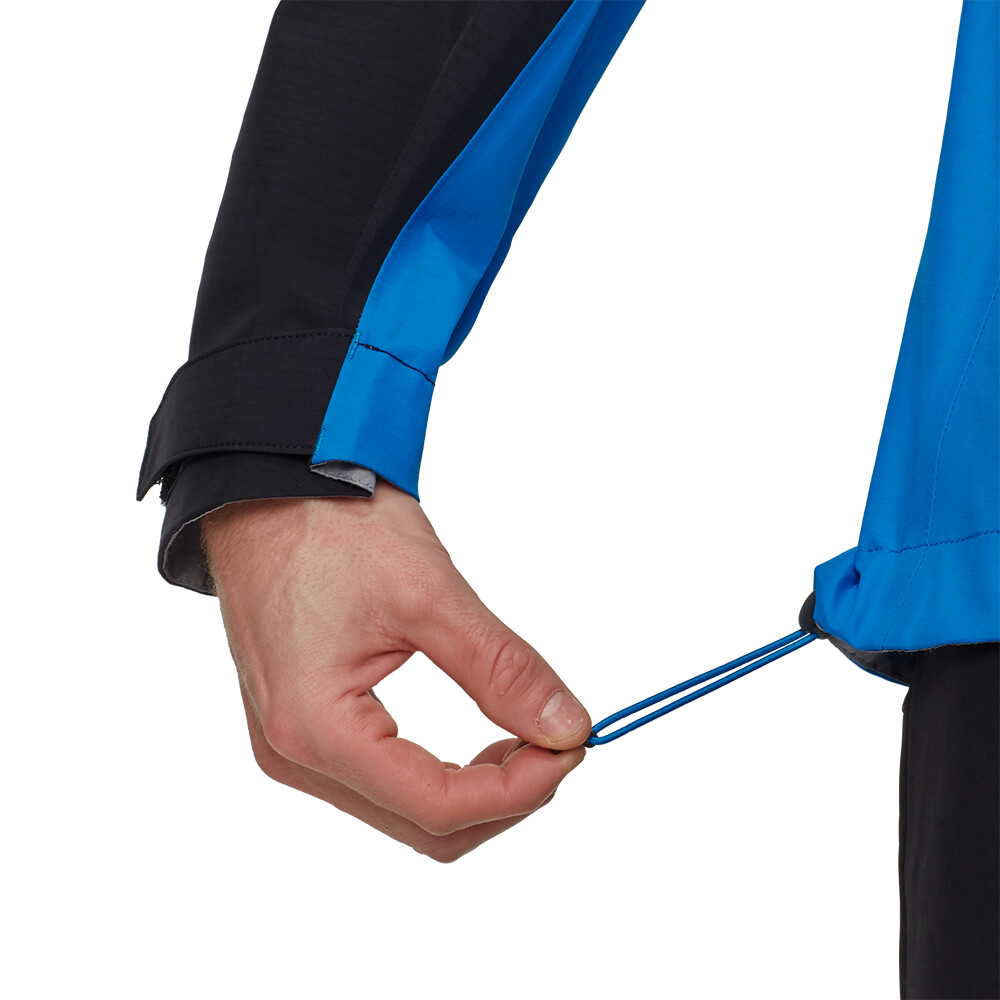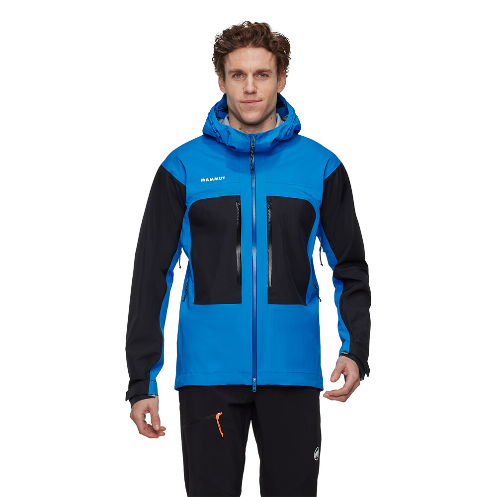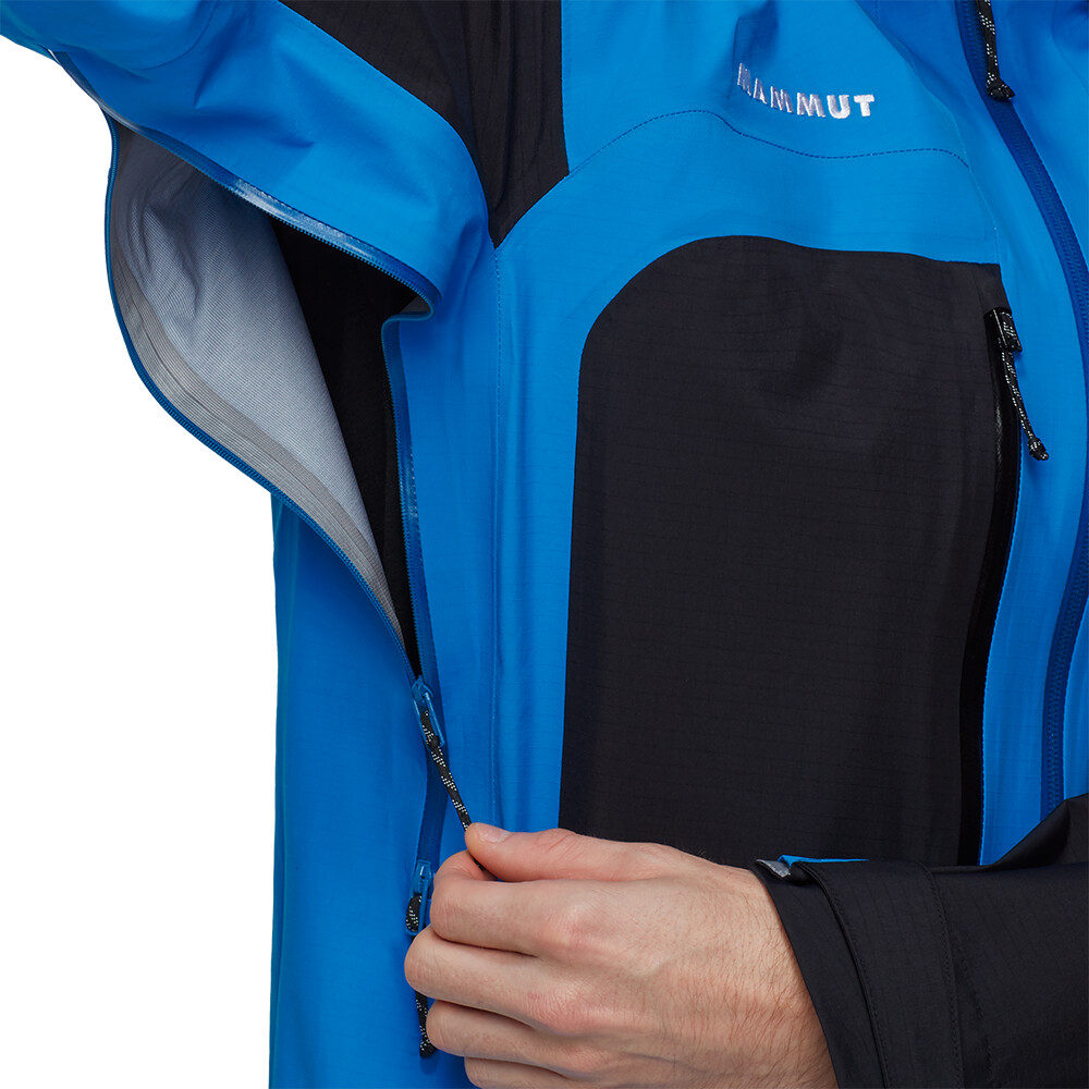 Jacheta este fabricată din materialul Mammut DRY Expedition, care este extrem de respirabil, impermeabil și rezistent la vânt. Țesătura Ripstop asigură o durabilitate excepțională. Croiala sportivă vă oferă libertate de mișcare. Capota reglabilă este compatibilă cu casca. Două buzunare cu fermoar sunt foarte ușor de accesat chiar și atunci când aveți hamul de alpinism pus sau centura de șold a rucsacului fixată. Păstrați-vă obiectele mici în buzunarul interior cu fermoar. Ventilația cu fermoar în axilă permite reglarea temperaturii. Mânecile au manșete reglabile pe care le puteți servi chiar și cu mănuși. tivul inferior este, de asemenea, reglabil.