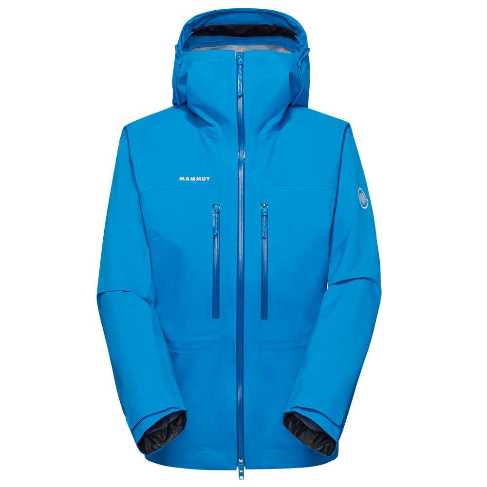 Jacheta este fabricată din materialul Mammut DRY Expedition, care este extrem de respirabil, impermeabil și rezistent la vânt. Țesătura ripstop asigură o durabilitate extremă. Croiala sportivă pentru femei vă oferă libertate de mișcare. Capota reglabilă este compatibilă cu casca. Două buzunare cu fermoar sunt foarte ușor de accesat chiar și atunci când aveți hamul de alpinism pus sau centura de șold a rucsacului fixată. Păstrați-vă obiectele mici în buzunarul interior cu fermoar. Ventilația cu fermoar în axilă permite reglarea temperaturii. Mânecile au manșete reglabile pe care le puteți servi chiar și cu mănuși. tivul inferior este, de asemenea, reglabil.