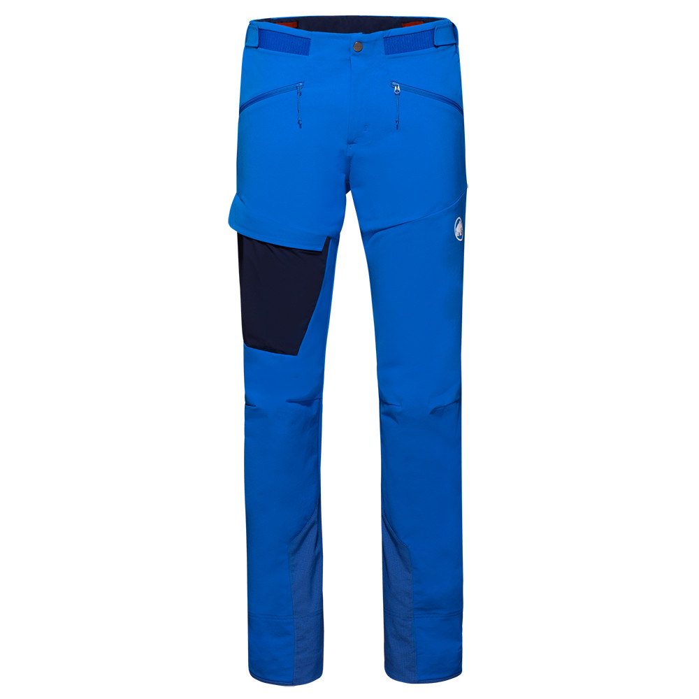 Pantalonii funcționali pentru bărbați de la Mammut oferă libertate de mișcare, protecție pe timp de vânt și respirabilitate. Pantalonii sport au buzunare care pot fi accesate cu șezutul, un tiv întărit al piciorului și un cârlig practic pentru pantofi.