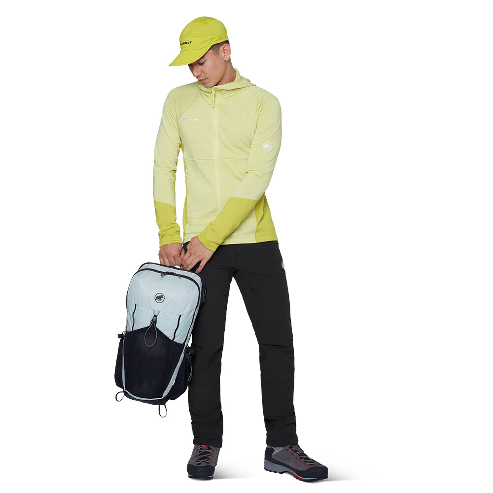Softshell-ul Mammut FLEXGUARD Active foarte rezistent mecanic face față cu ușurință abraziunii pe stânci. Este extensibilă în 4 direcții. Împreună cu genunchii preformați, garantează libertatea de mișcare. Talia poate fi ajustată cu ușurință cu ajutorul închiderii laterale cu Velcro cu profil redus. Un buzunar pe coapsă și două buzunare frontale cu fermoar stochează în siguranță obiectele de valoare. Partea de jos poate fi ajustată cu un cordon de strângere. Pur și simplu fixați-l la cizmele dvs. de drumeție sau alpine cu cârligul inferior. Veți dori să purtați acești pantaloni în munți pe tot parcursul anului. Completează-i cu chiloți funcționali și nu lăsa sezonul de vară să te oprească.