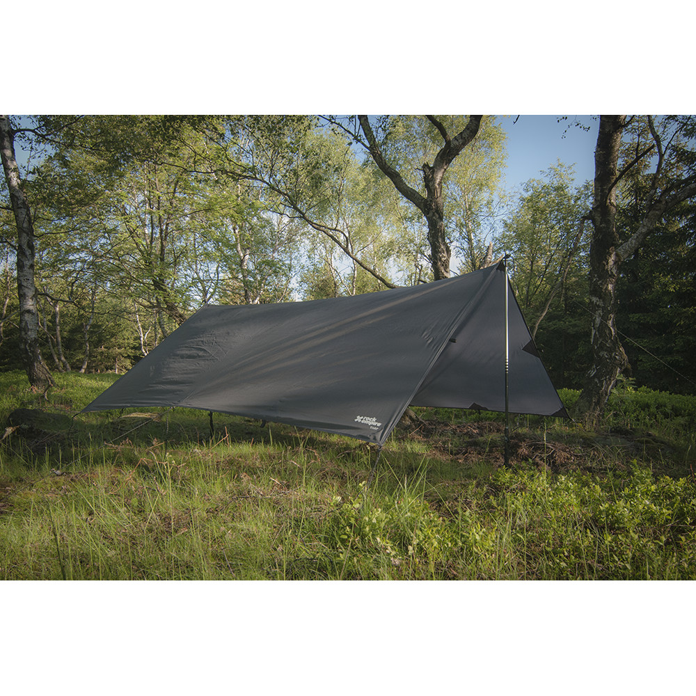 Un adăpost ușor dacă nu doriți să cărați un cort și în același timp să vă protejați de vânt și ploaie. Tarpa Rock Empire cântărește aproximativ cât o sticlă de apă de jumătate de litru și adăpostește confortabil până la două persoane. Un total de 19 ochiuri detașabile permit variabilitatea construcției și a nivelului de protecție împotriva intemperiilor. Există un "cord lock" pe 8 dintre ochiuri pentru o închidere rapidă și ușoară. Materialul adăpostului este natural hidrofug și rezistent la degradarea UV. În medii ploioase, acesta își menține stabilitatea dimensională fără a fi nevoie de re-închidere frecventă. Picheții nu sunt incluși.