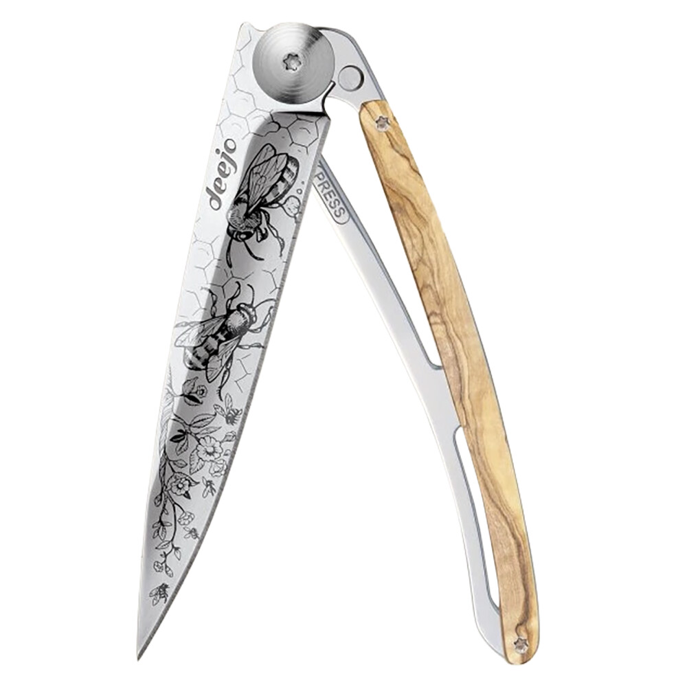 Motivul unic al albinelor de pe lamă sporește caracterul cuțitului și îl transformă nu doar într-o unealtă practică, ci și într-un accesoriu elegant. Mânerul din lemn de măslin oferă fiecărei piese un aspect original și o prindere confortabilă. Datorită dimensiunilor sale compacte (aprox. 11 cm închis, 20,5 cm deschis) și a clipului practic, îl puteți ține mereu la îndemână, în rucsac sau în geanta de umăr.