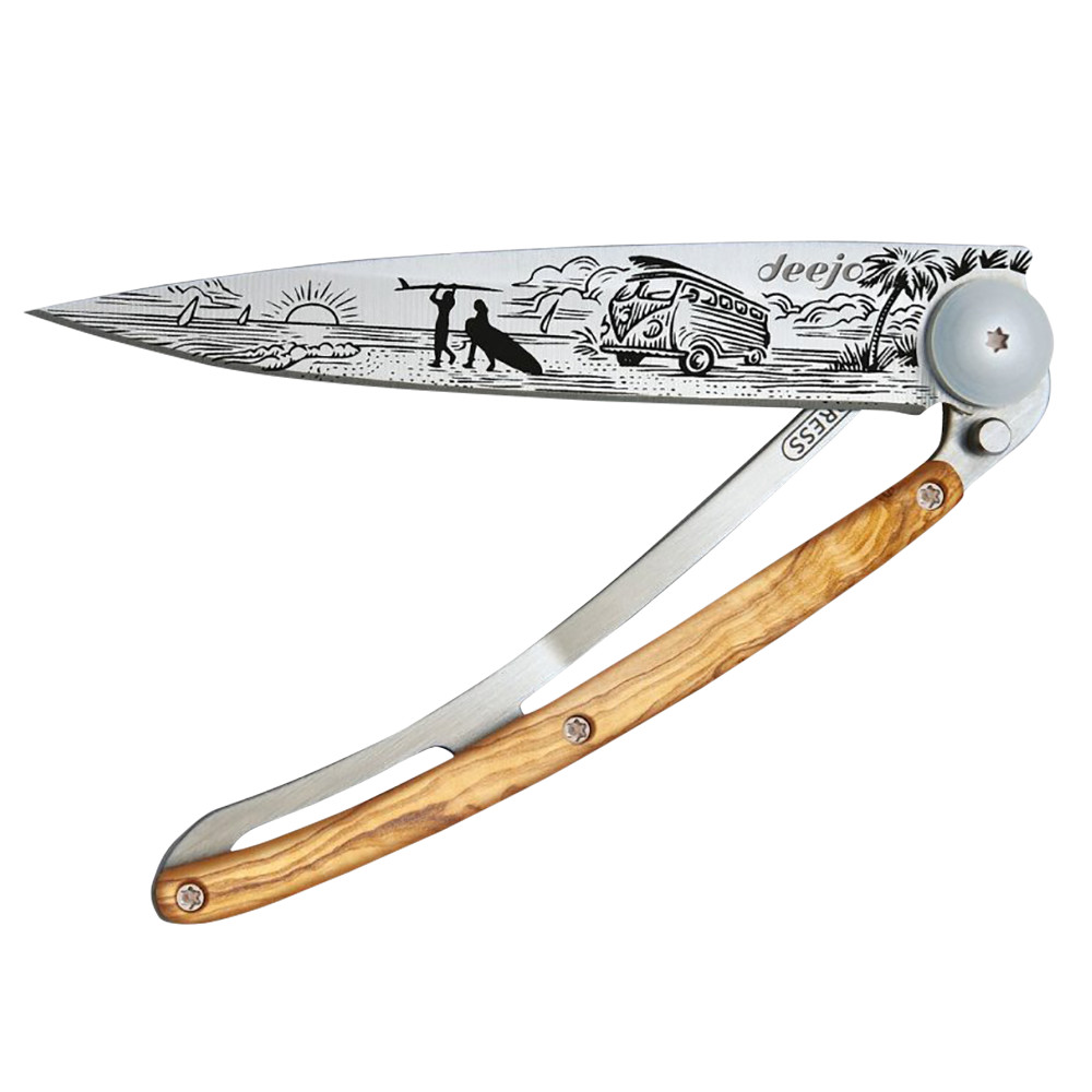 Brandul Deejo a fost fondat în Franța și rămâne francez pe cât posibil. Proiectarea, asamblarea, dar și gravarea cu laser, ambalarea și expedierea în întreaga lume se fac la periferia Parisului. Doar un grad mic de implicare străină este implicat în procesul de producție. Stéphane Lebeau a venit cu ideea unor briceaguri elegante în 2010 și a conceput un cuțit cu o greutate comparabilă cu cea a unei scrisori.