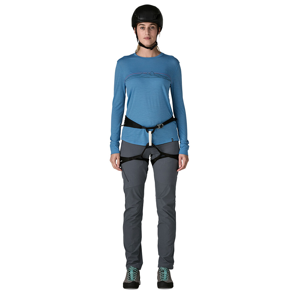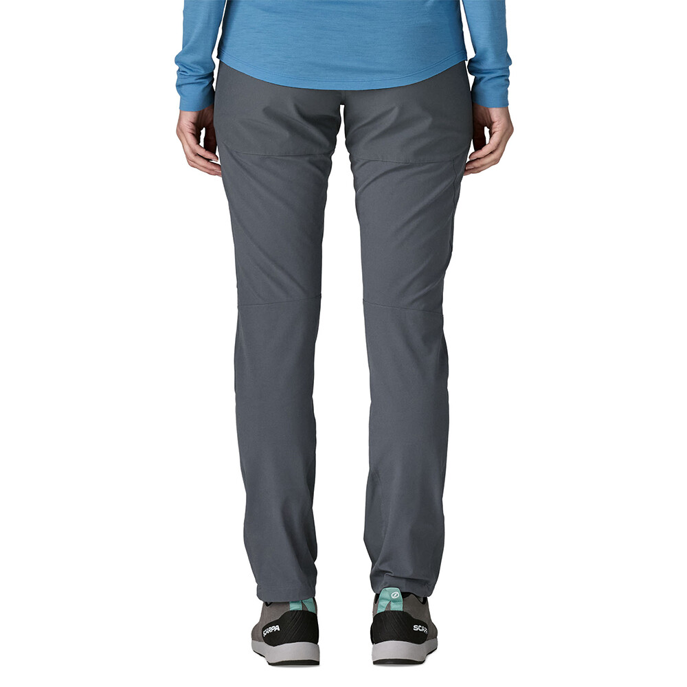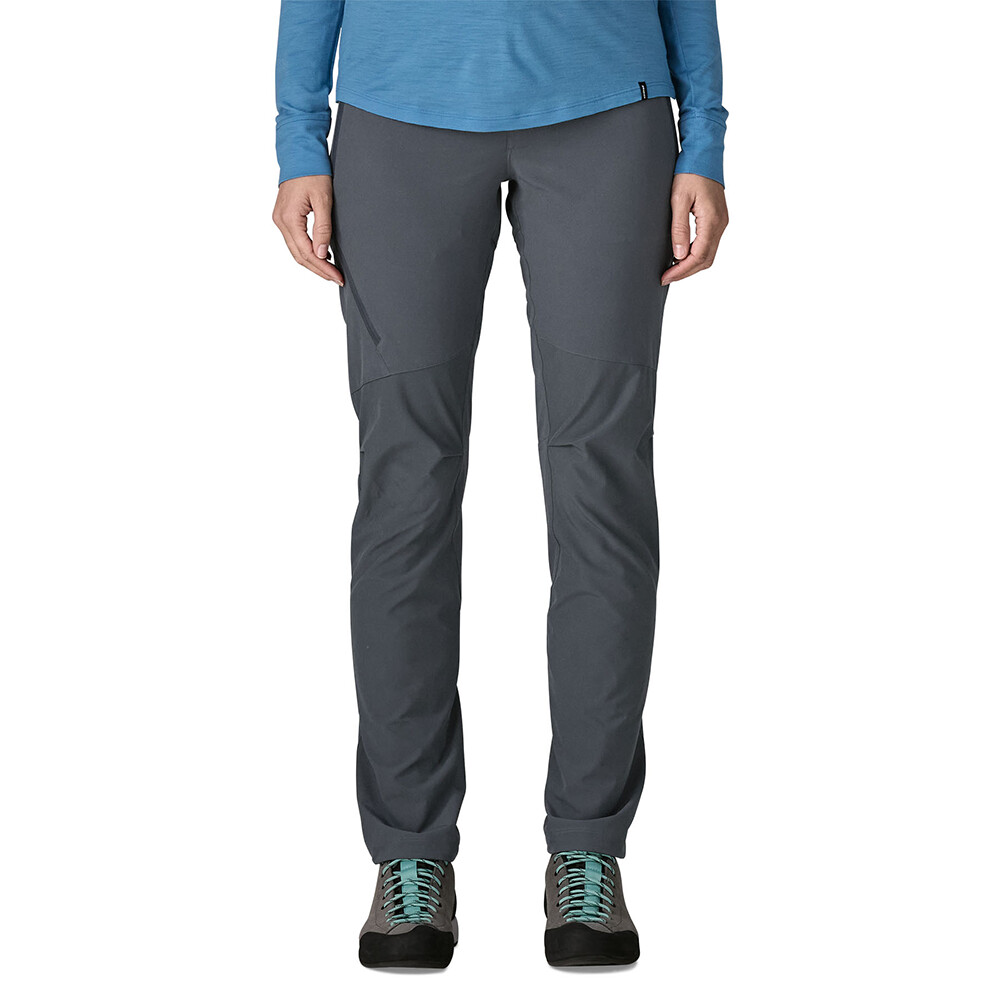 Pantalonii Terravia Alpine Pants Women de la Patagonia combină o potrivire subțire cu o articulare grijulie a materialelor. Panourile durabile cu țesătură dublă pot face față unor sarcini mai mari, în timp ce materialul mai ușor asigură respirabilitate și confort în mișcare. Datorită elastanului, pantalonii nu restricționează pașii lungi, fandările sau abdomenele .