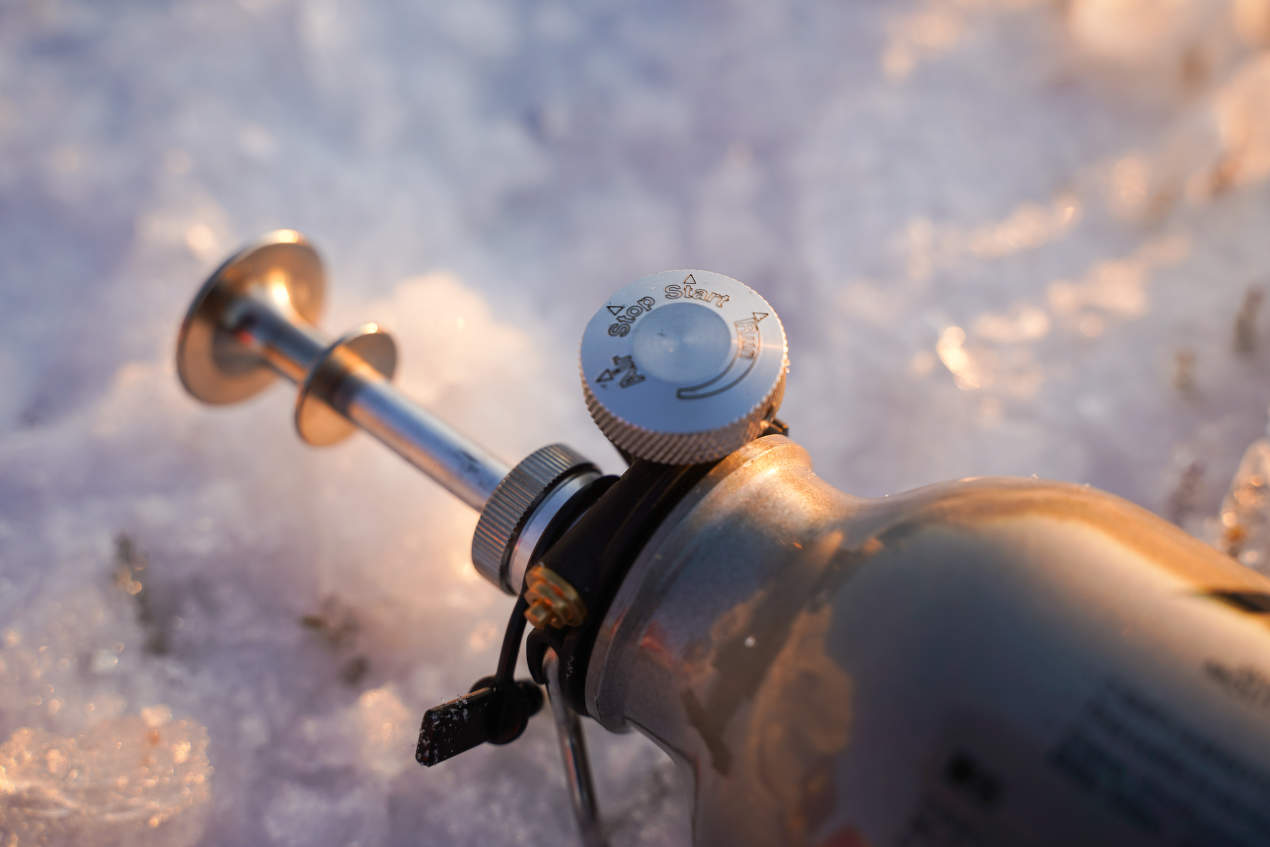 Arzătorul are o formă concavă, cu o margine ridicată, ceea ce ar trebui să facă soluția mai rezistentă la vânt. Cu toate acestea, în practică, aveți totuși nevoie de o pragulă suplimentară pentru a proteja spațiul dintre arzător și partea inferioară a ejectorului, altfel vântul ia flăcările și încălzirea durează sensibil mai mult. Tubul de gazare de pe arzător accelerează considerabil preîncălzirea aragazului. Arzătorul se aprinde de sus, astfel încât aprinderea benzinei poate să nu aibă succes imediat, mai ales iarna. Benzina foarte volatilă poate ajuta într-o oarecare măsură, dar chiar și așa s-ar putea să nu fie suficient. O brichetă cu jet este potrivită pentru aprindere, dar aceasta este umplută cu butan, pe care trebuie să-l păstrați cald la temperaturi sub zero grade. Chibritul funcționează, dar vântul poate fi o problemă. O brichetă convențională nu este foarte compatibilă cu soba, deoarece aceasta nu este construită pentru a fi aprinsă de sus, plus că marginea ridicată a arzătorului vă încurcă. Cu cremene, nu am reușit să aprind aragazul la temperaturi sub zero grade Celsius. Aprinderea propan-butanului nu este, desigur, o problemă.
