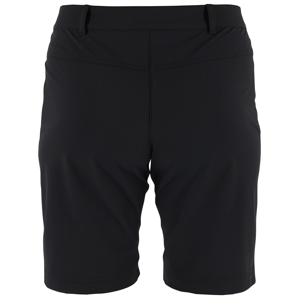 Pantalonii scurți au o croială frumoasă, cu o lungime deasupra genunchiului și o închidere cu fermoar. Există bucle de curea la talie. Două buzunare de mână păstrează obiectele mici. Tratamentul hidrofug (fără PFC) vă protejează în ploile de vară.