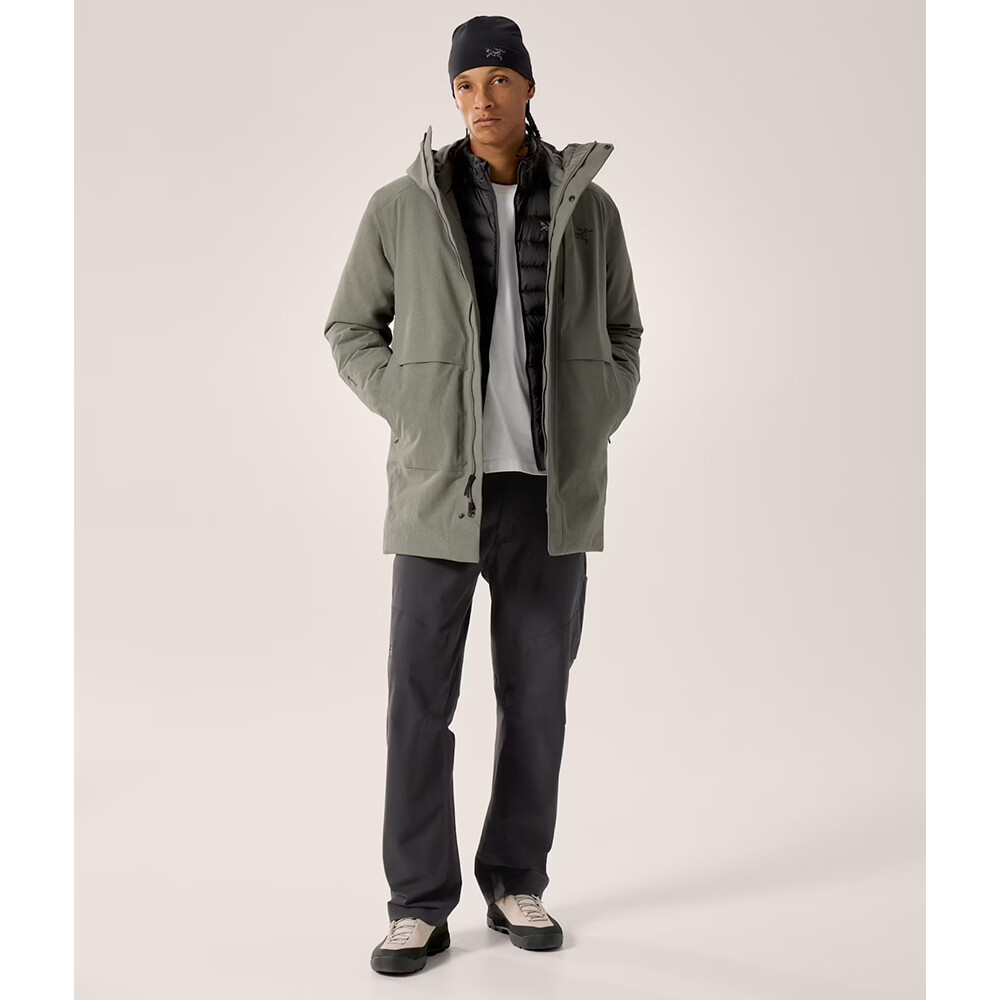 Parka dispune de un strat exterior GORE-TEX® 2L cu tehnologie foarte impermeabilă și respirabilă pentru a vă proteja de ploaie, zăpadă și vânt fără a vă supraîncălzi. Materialul este în același timp suficient de durabil și foarte ușor, făcând din această geacă o alegere ideală pentru bărbații activi. Tăietura extinsă (până la jumătatea coapsei) și designul ergonomic nu oferă doar o protecție termică excelentă, ci și un aspect modern și curat care se potrivește cu orice ținută urbană.