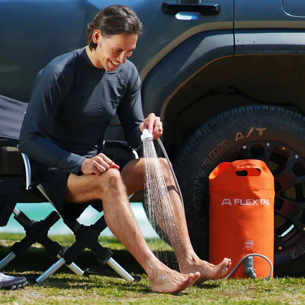 Dușul de camping cu rezervor de apă inclus de la Flextail asigură confort maxim în timpul călătoriilor și campingului. Are o pompă reîncărcabilă încorporată care vă permite să vă bucurați de până la 70 de minute de apă curentă la apăsarea unui buton. De asemenea, include un rezervor de apă cu o capacitate de 20 L. Dușul poate fi agățat sau de sine stătător și are două atașamente diferite, o roză de duș clasică sau un robinet. Cu Tiny Shower Bucket vă puteți spăla cu ușurință bicicleta, paddleboard-ul, realiza igiena personală sau vă puteți spăla animalul de companie. Și o puteți folosi și pentru a spăla vasele sau pentru a umple sticlele de apă.